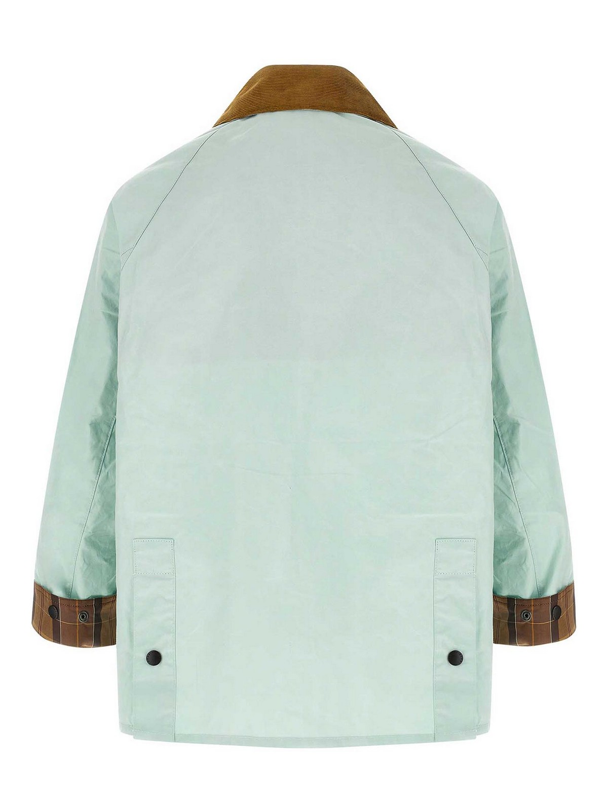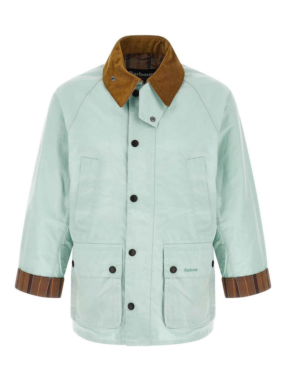 Giacca 'bedale' in resistente cotone spalmato con collo a camicia in velluto a coste a contrasto con sottogola, ricamo logo tono su tono e chiusura frontale con zip e bottoni automatici, tasche, maniche lunghe raglan con polsini ripiegabili, spacchi posteriori con bottoni automatici, sfoderata.
