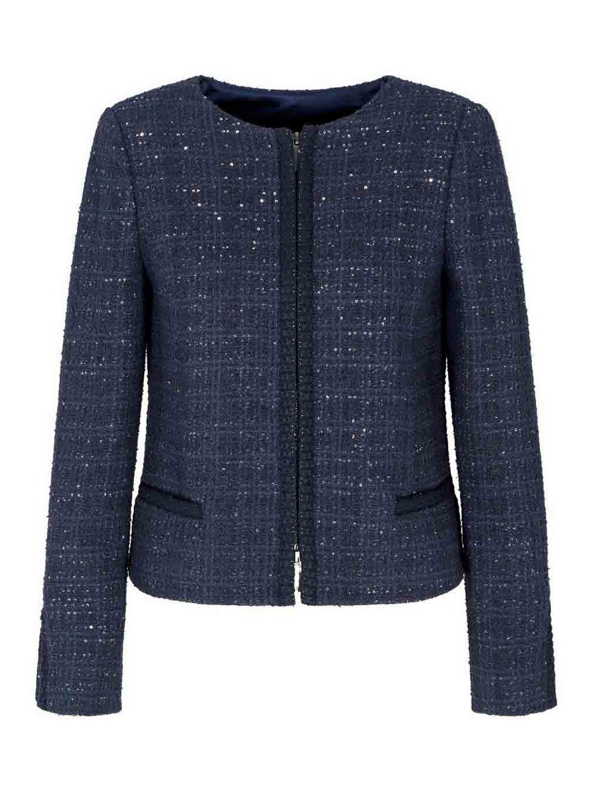Blu blu navy abbellimento in tweed tweed zip fissata chiusura a maniche lunghe.