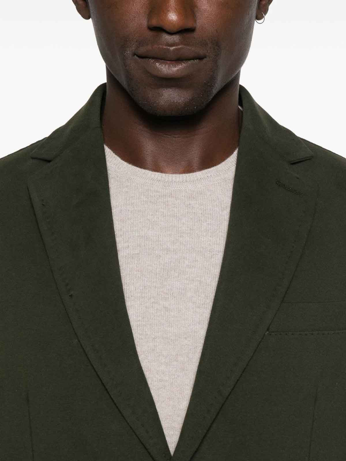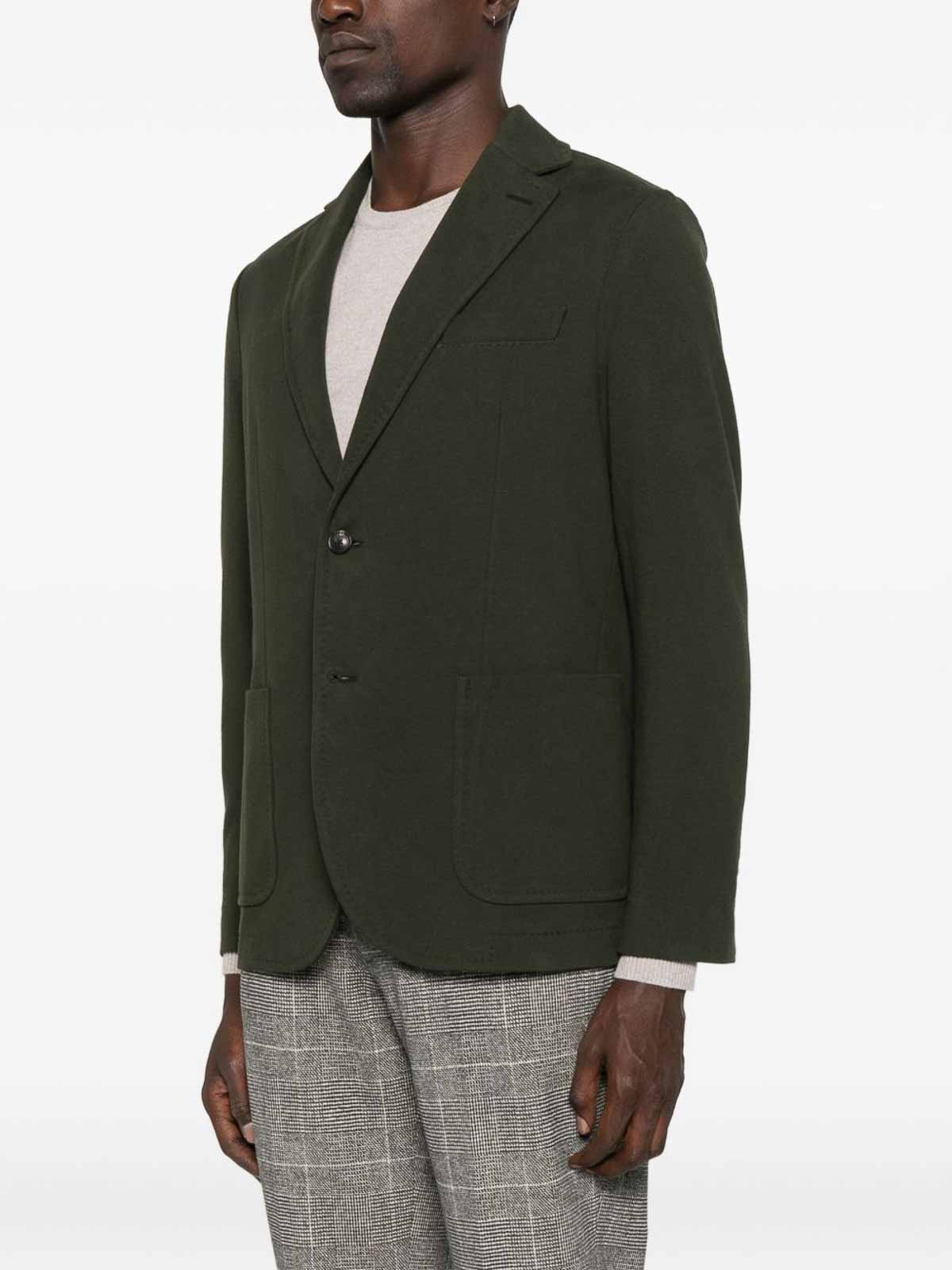Caratteristiche verde a bottoni tasche applicate revers classici maniche lunghe