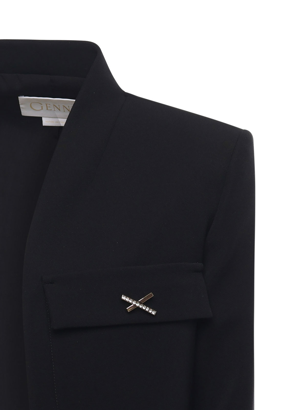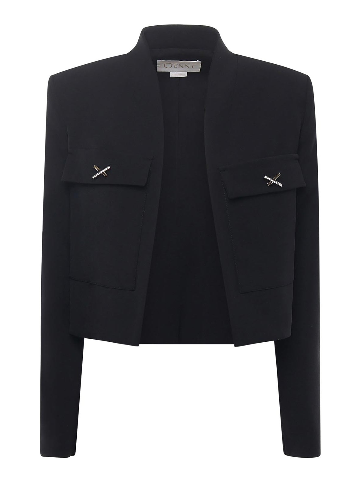 realizzato in cady, tasche frontali applicate, vestibilità regolare, made in Italy, la taglia indicata in foto è 40, colore nero