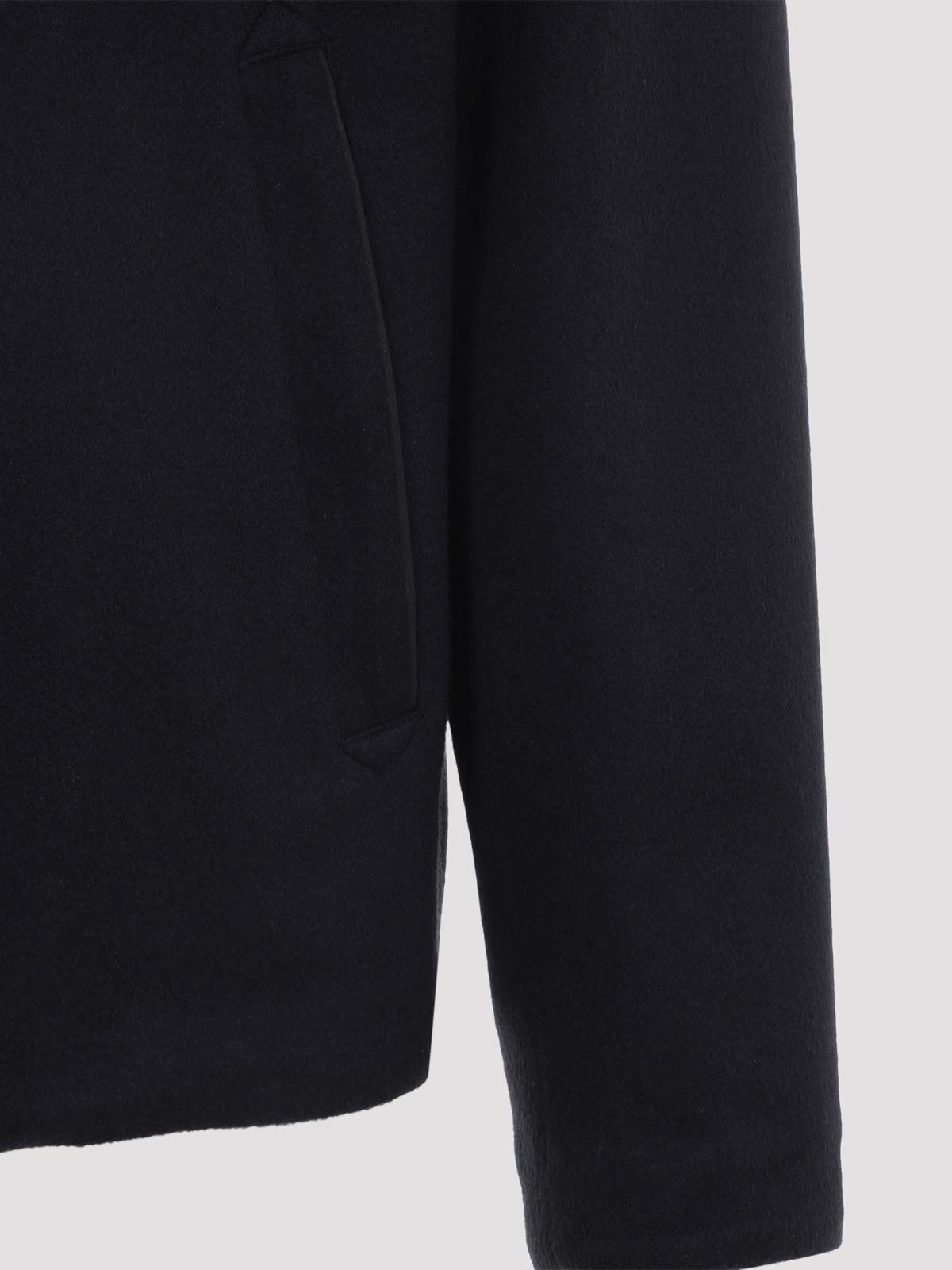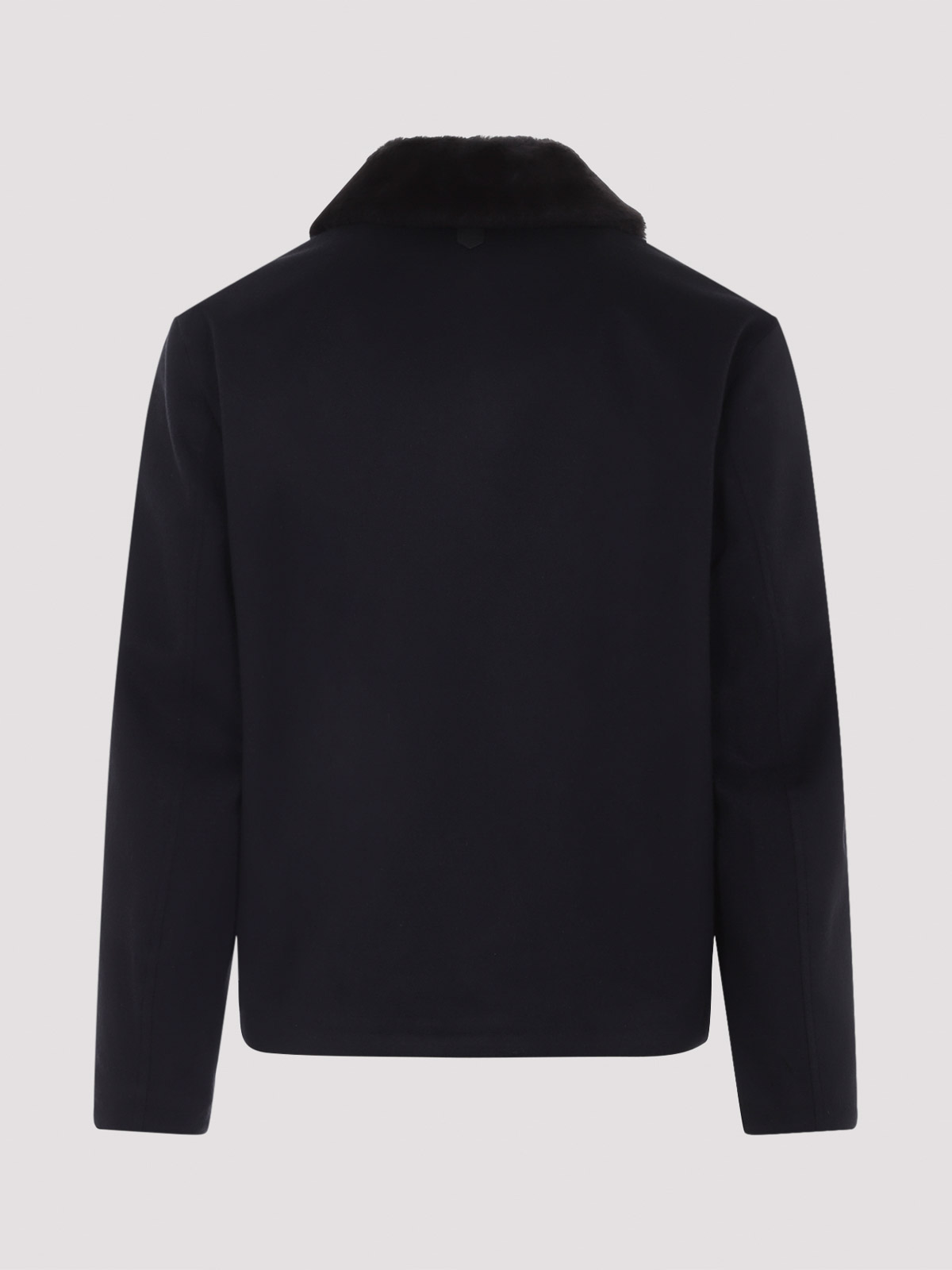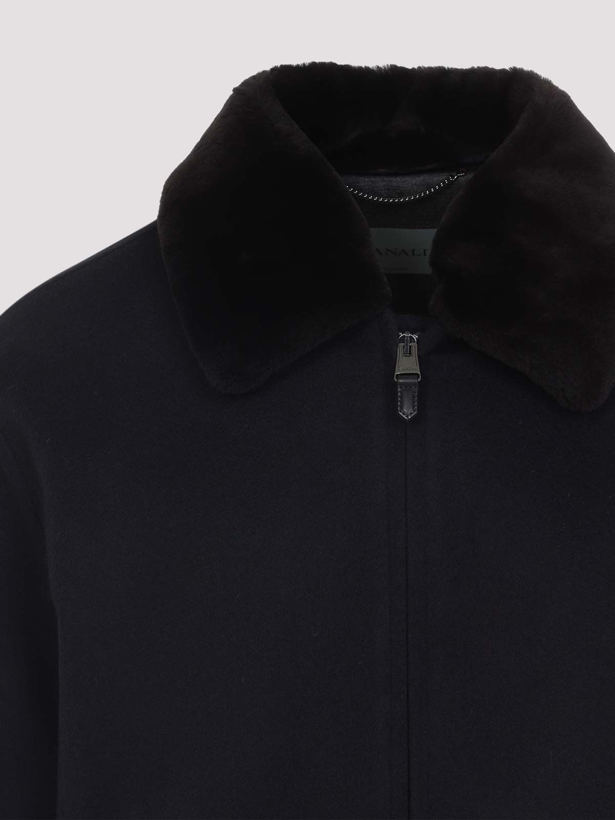 Giacca Canali coach in cashmere blu navy. realizzato in cashmere blu navy, collo in pelliccia a punta, chiusura con zip a doppio cursore sul davanti, due tasche, maniche lunghe, foderato, fondo dritto.