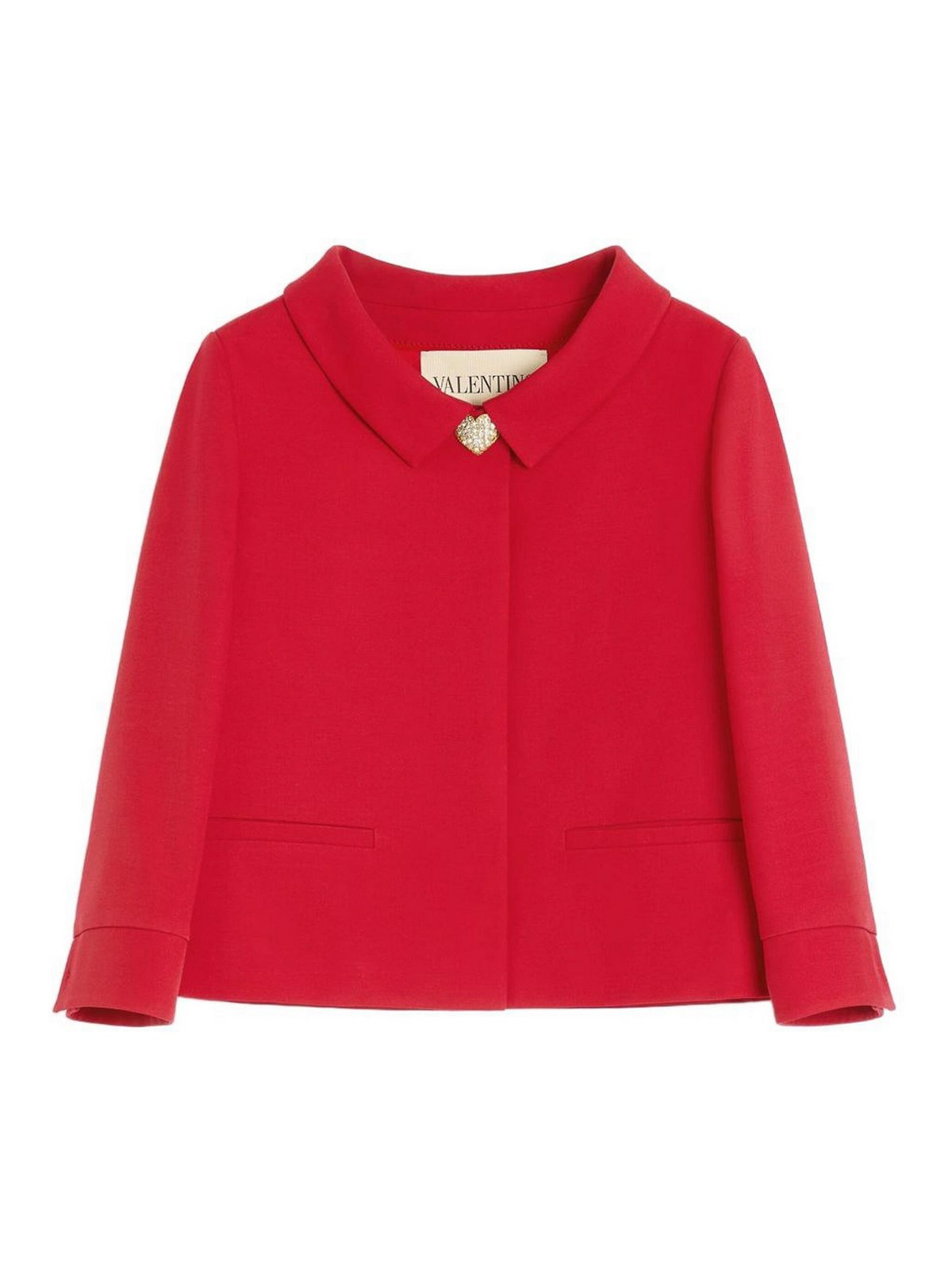 Valentino pronto da indossare, rosse, bottone, tasche a due bottoni, collare piatto appuntito