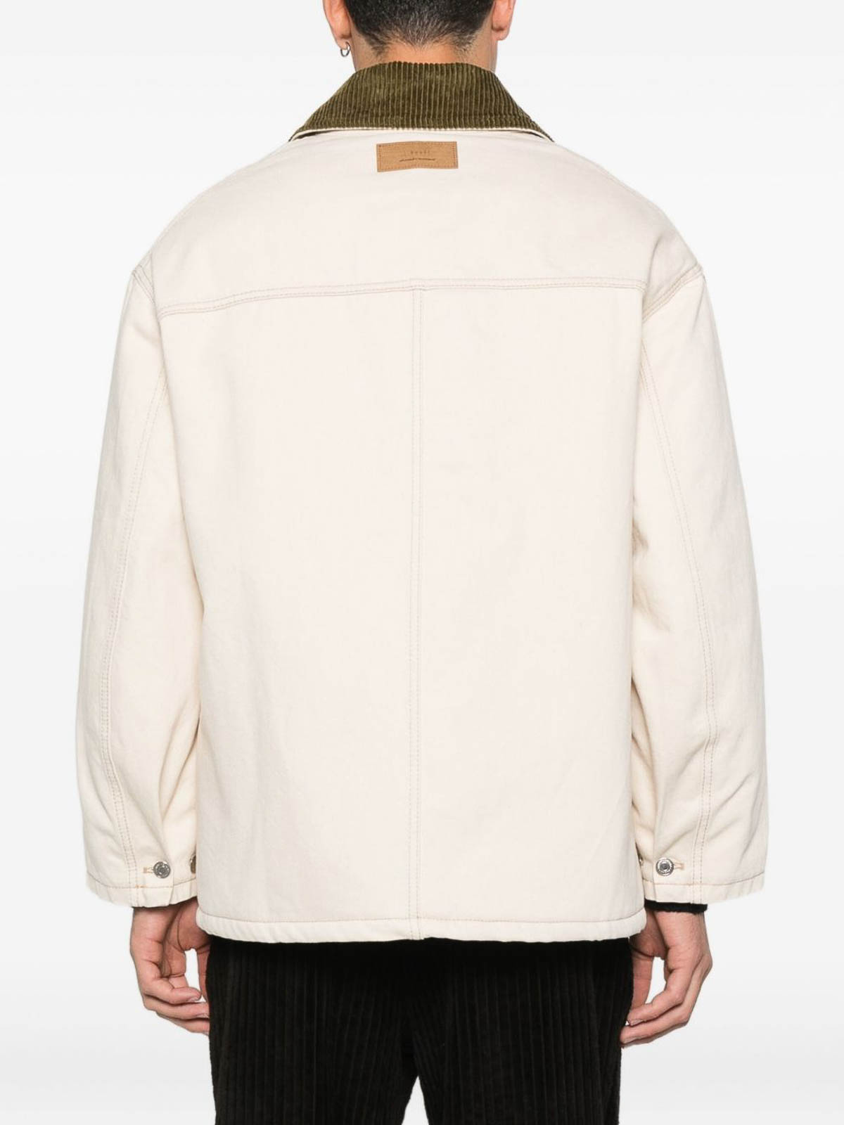 Tasche applicate con colletto in velluto a coste bianco e impunture con bottoni
