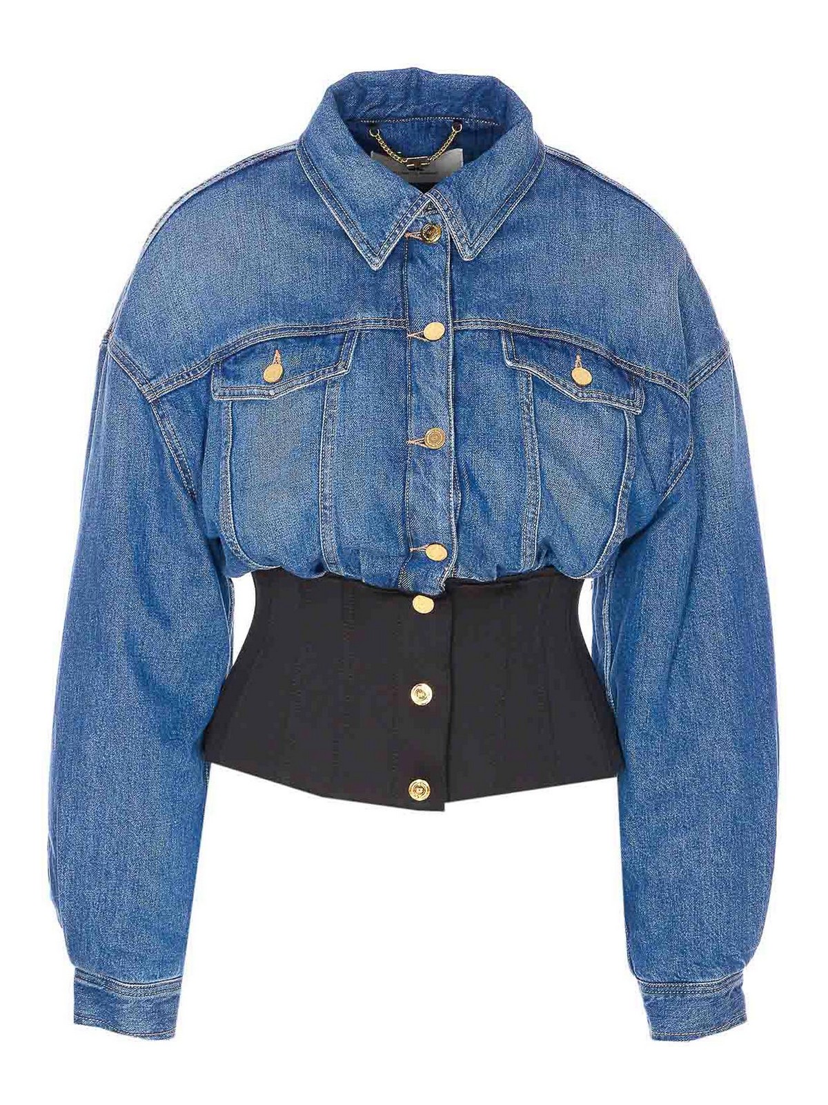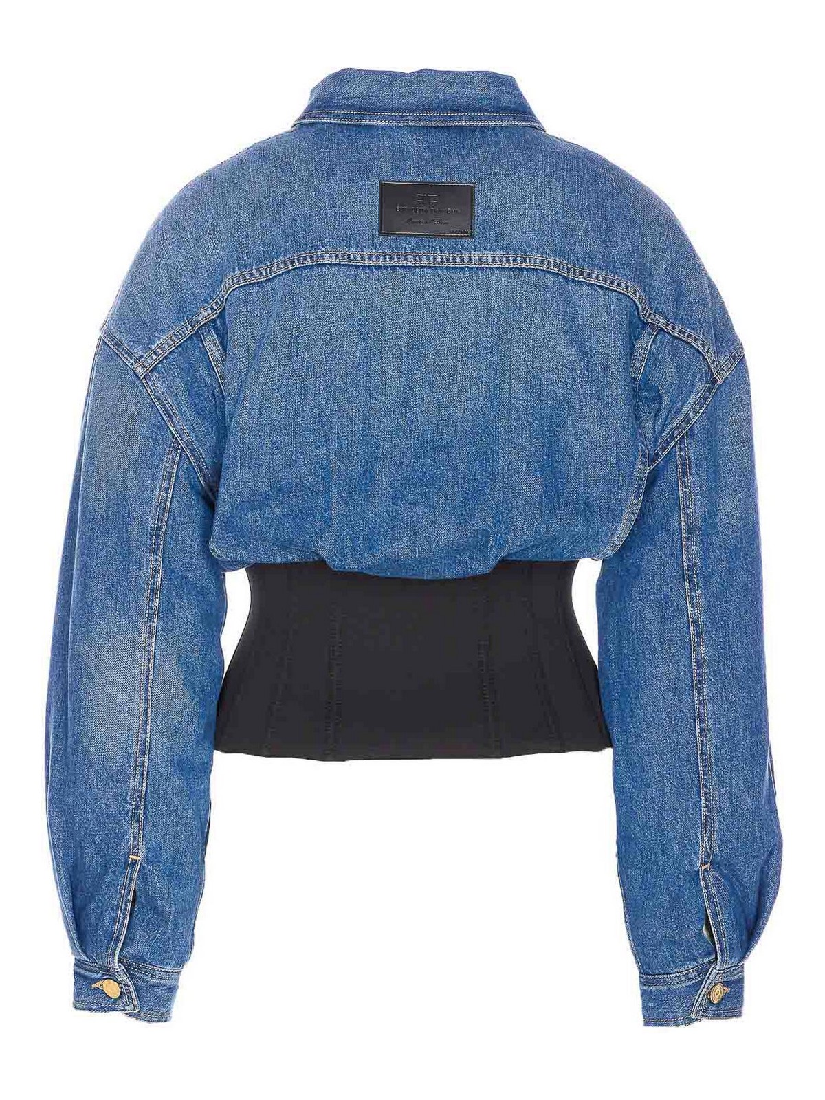 Giacca imbottita in denim Elisabetta Franchi con bottoni regolari maniche lunghe con colletto su polsini imbottiti