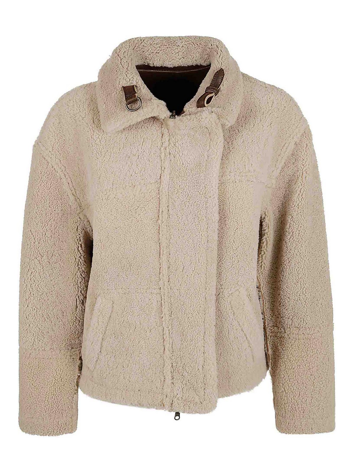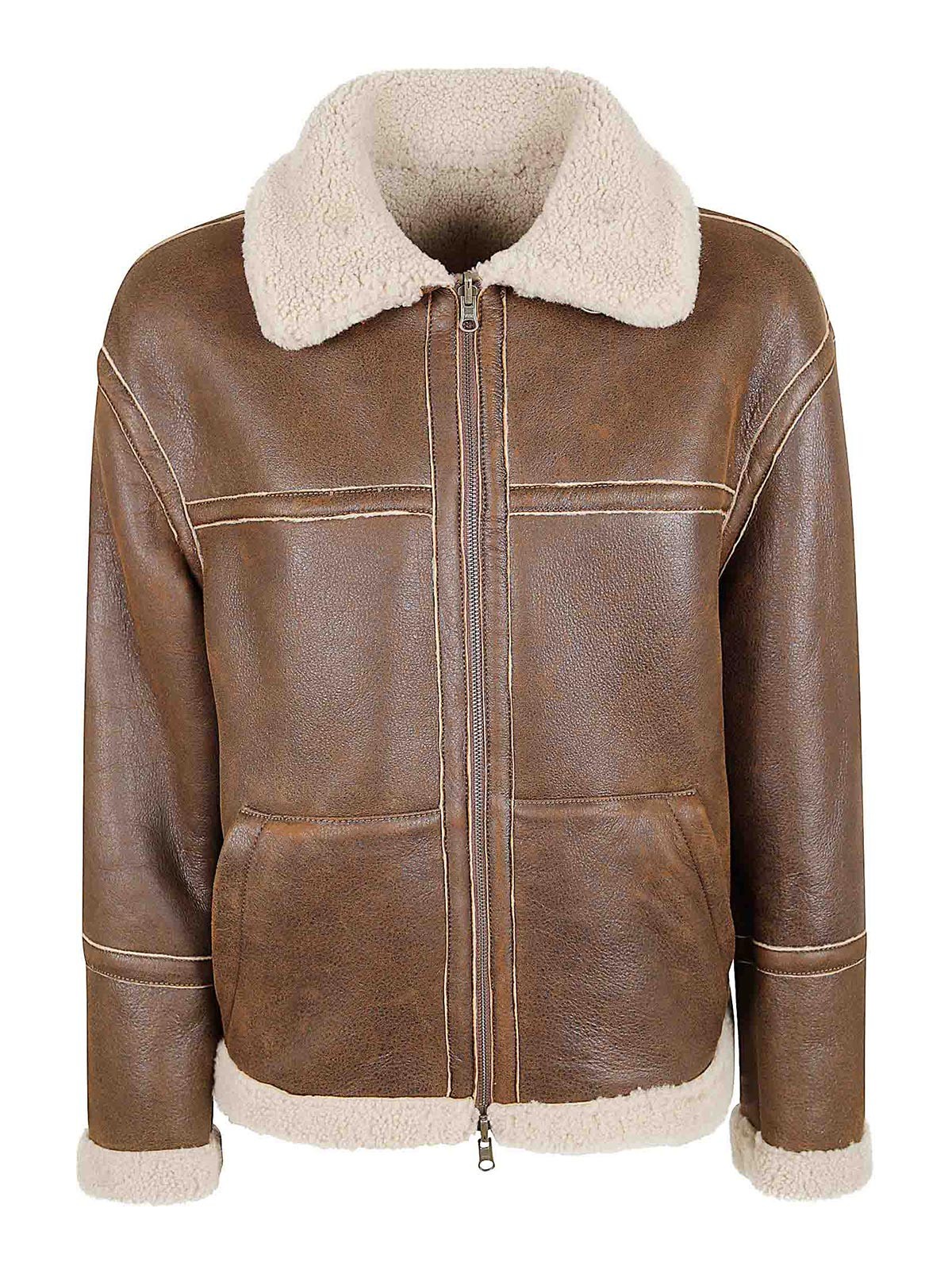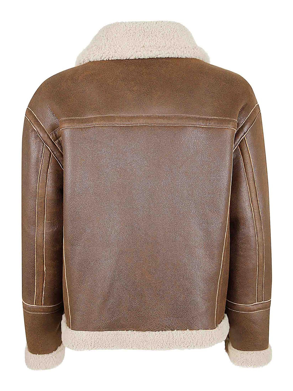 giubbotto con `chiusura a zip con dettagli in shearling marrone, tasche a patta, maniche lunghe, design a pannelli`