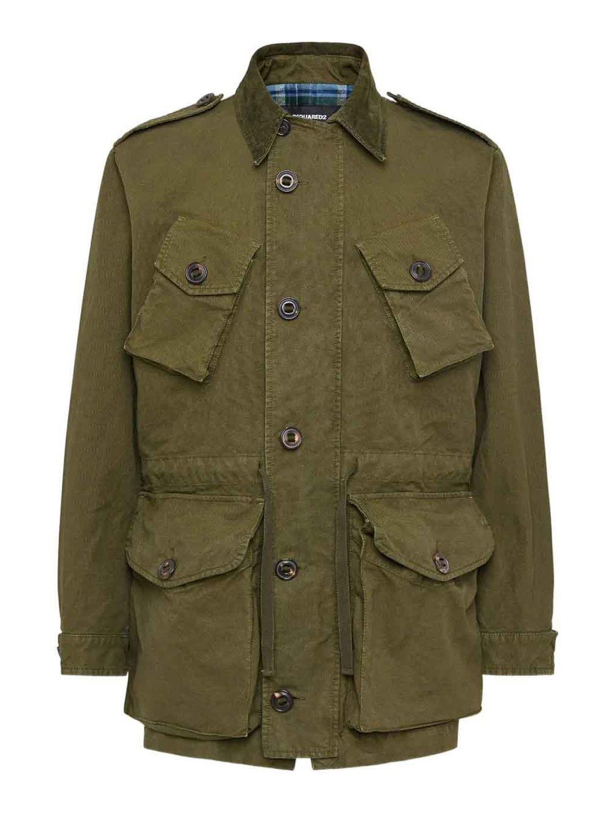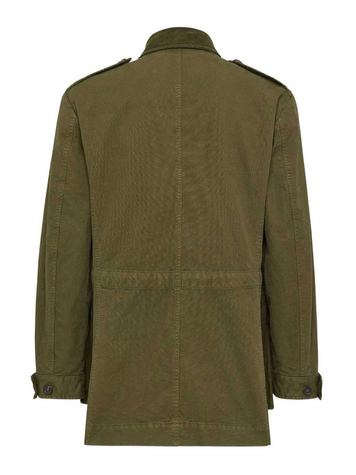 Verde, chiusura frontale con bottoni, due tasche sul petto con patta, due tasche frontali con patta, maniche lunghe