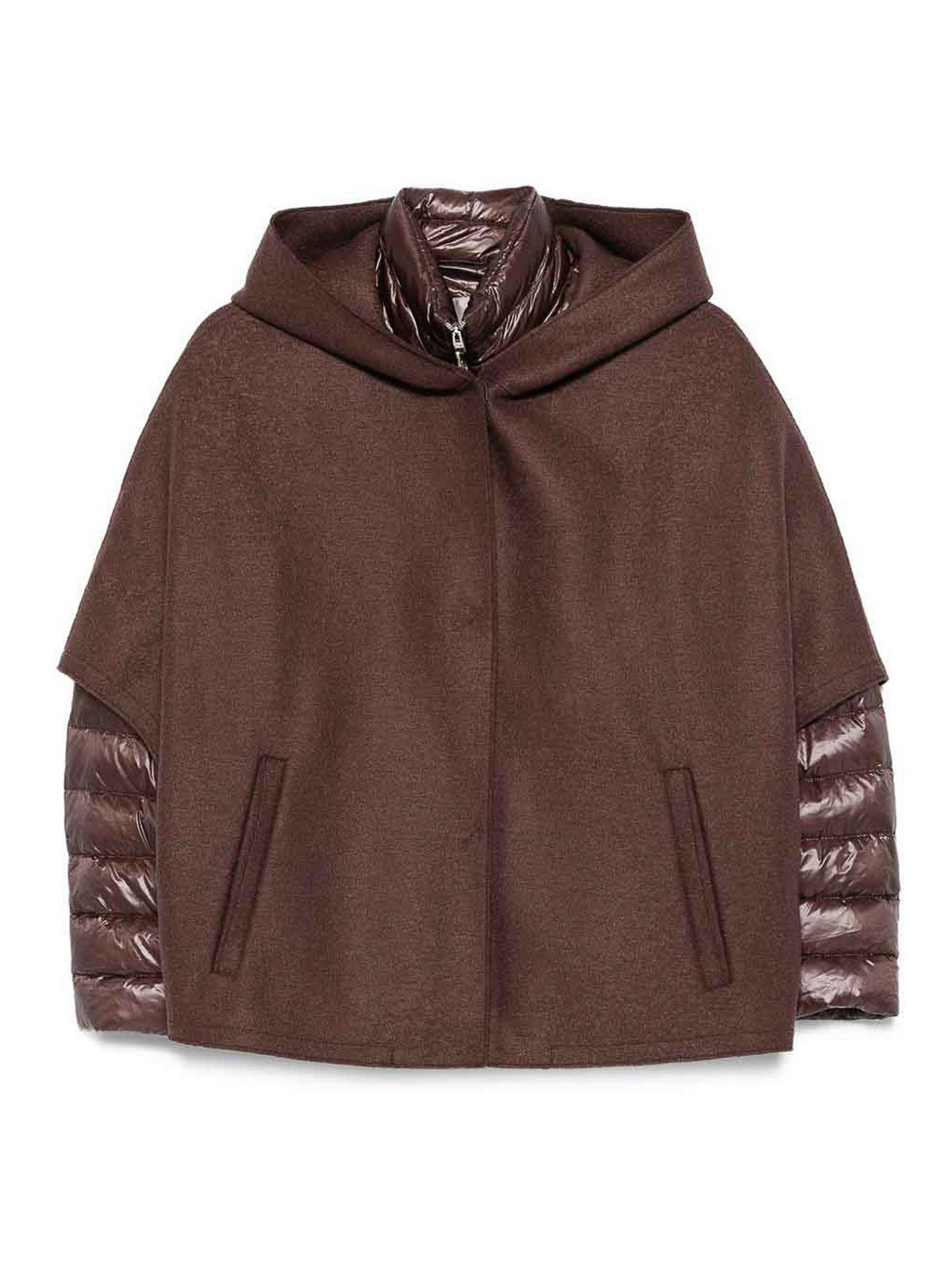 Coglione marrone con cappuccio con cappuccio lunghe tasche con zip trapunte