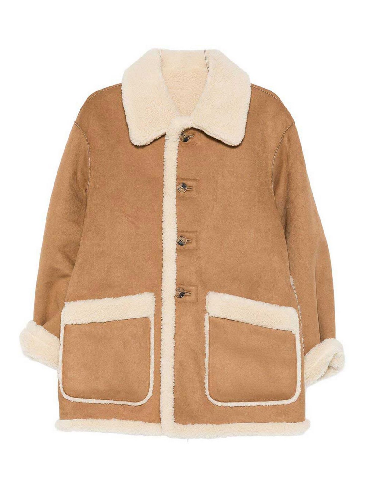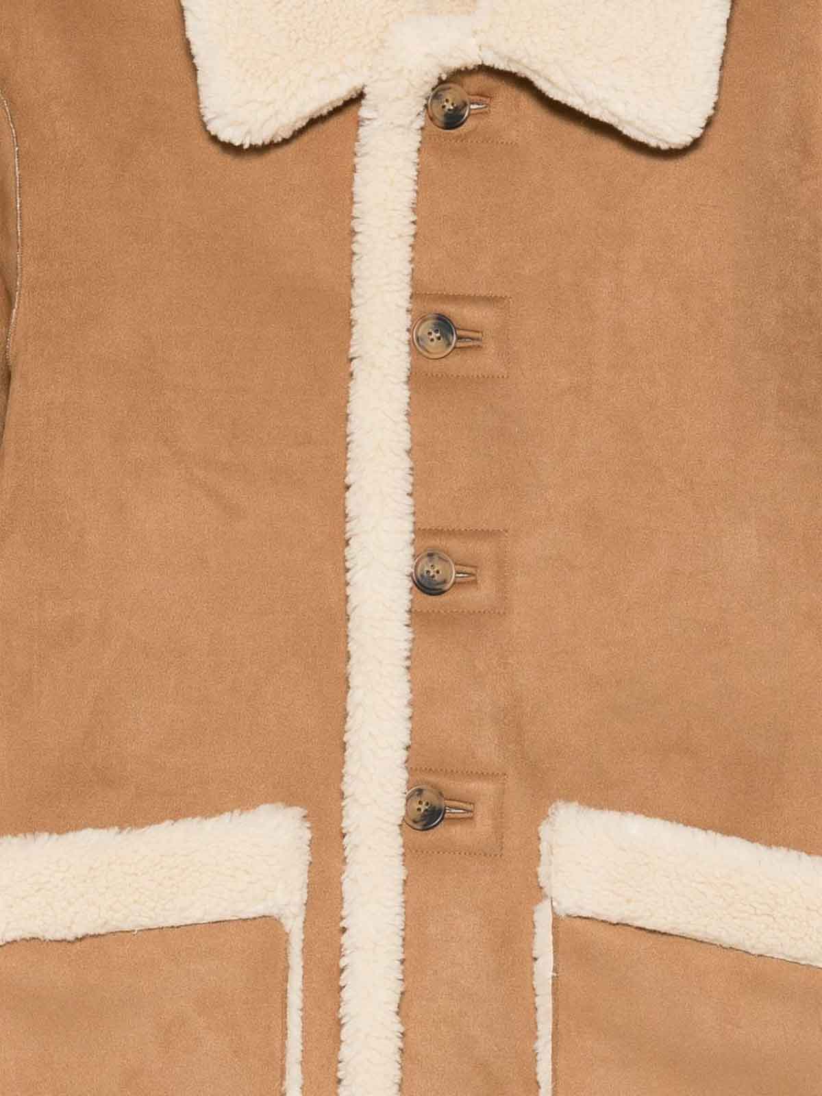 Colletto in finto shearling marrone chiusura con bottoni sul davanti tasche applicate anteriori orlo dritto