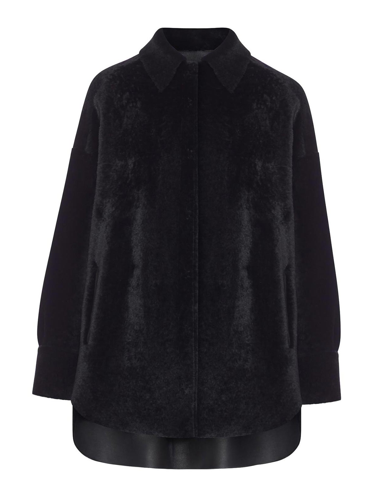 Colletto classico, abbottonatura nascosta, due tasche oblique, maniche lunghe con polsini, pannello posteriore allungato, - vestibilità  ampia, colore nero