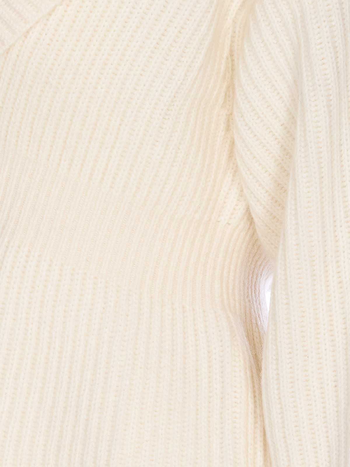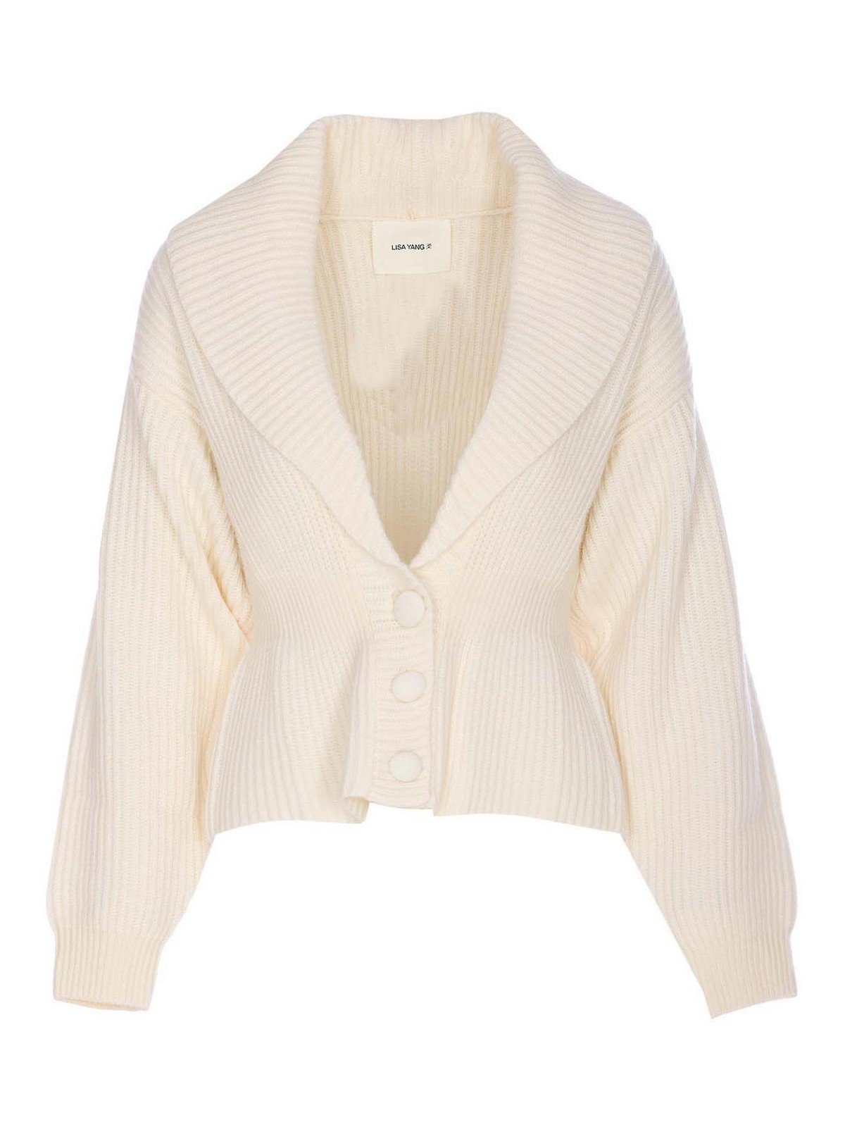Cardigan Alessandra bianco Lisa yang con chiusura frontale con bottoni, maniche lunghe, ampio scollo a V, colletto
