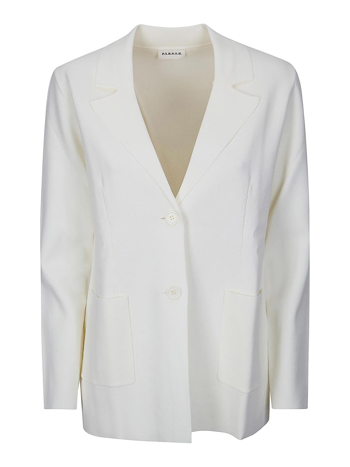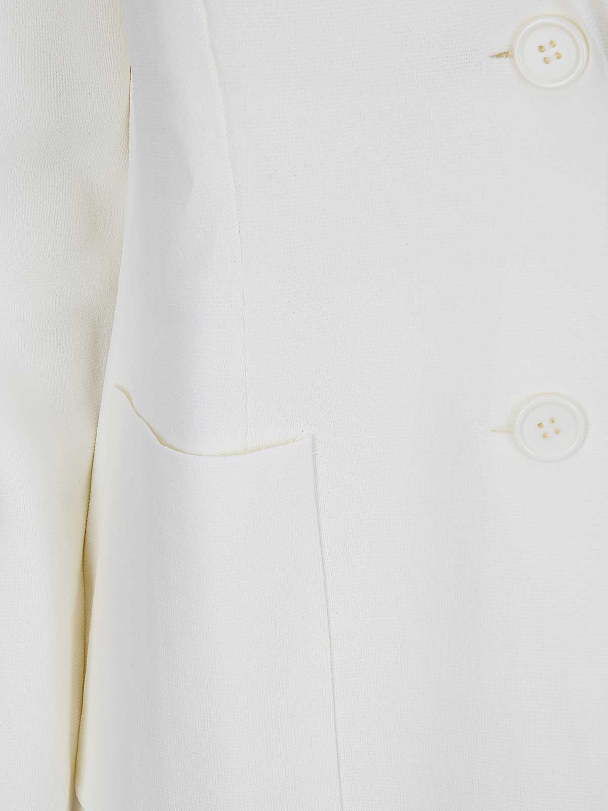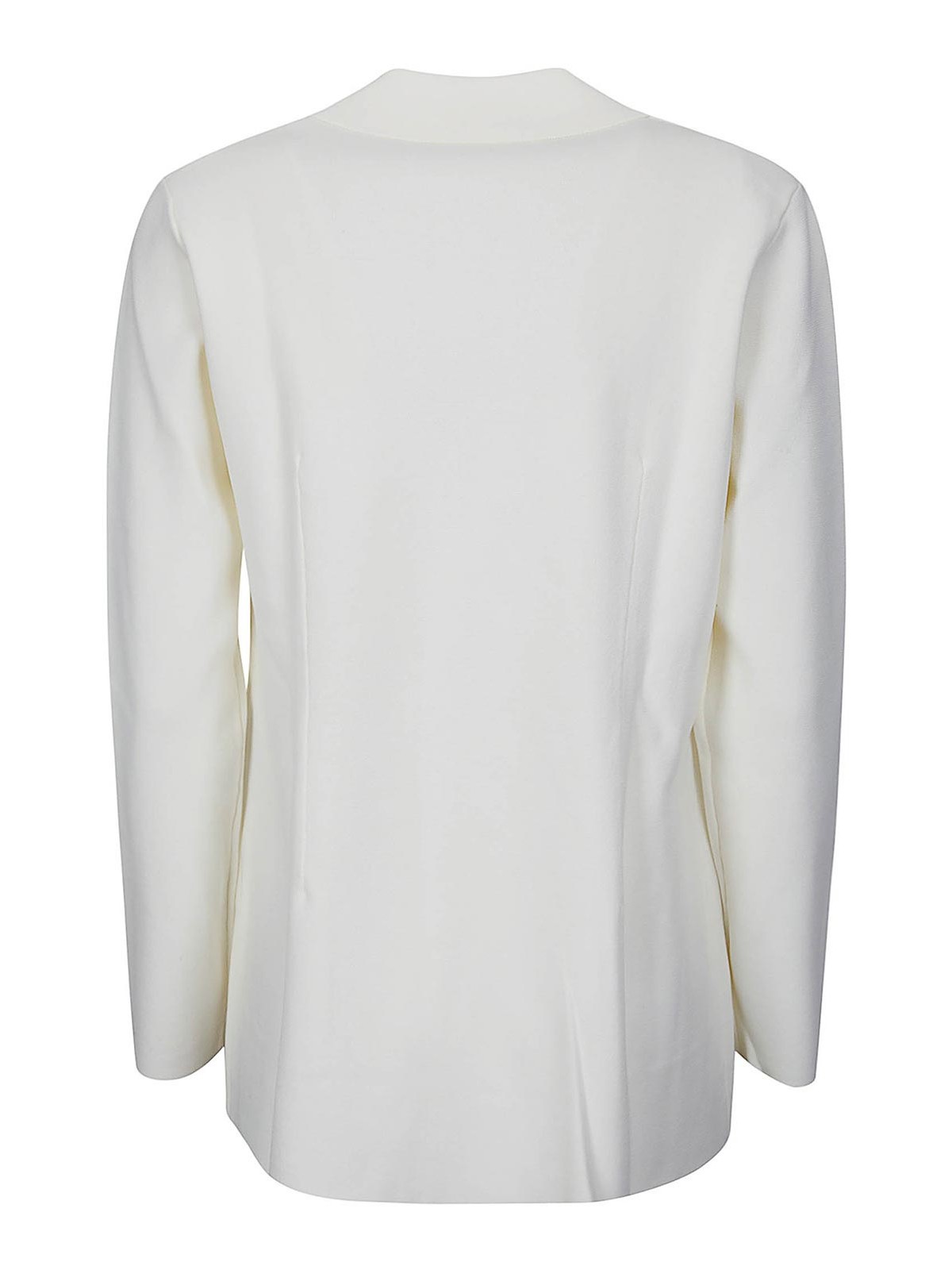 Giacca in viscosa dal taglio elegante, bottoni bianchi frontali, colletto regolare, ampio scollo, tasche frontali.