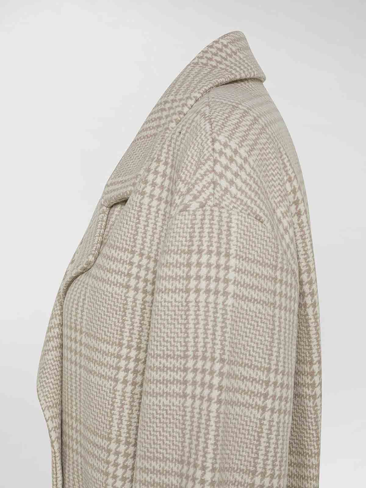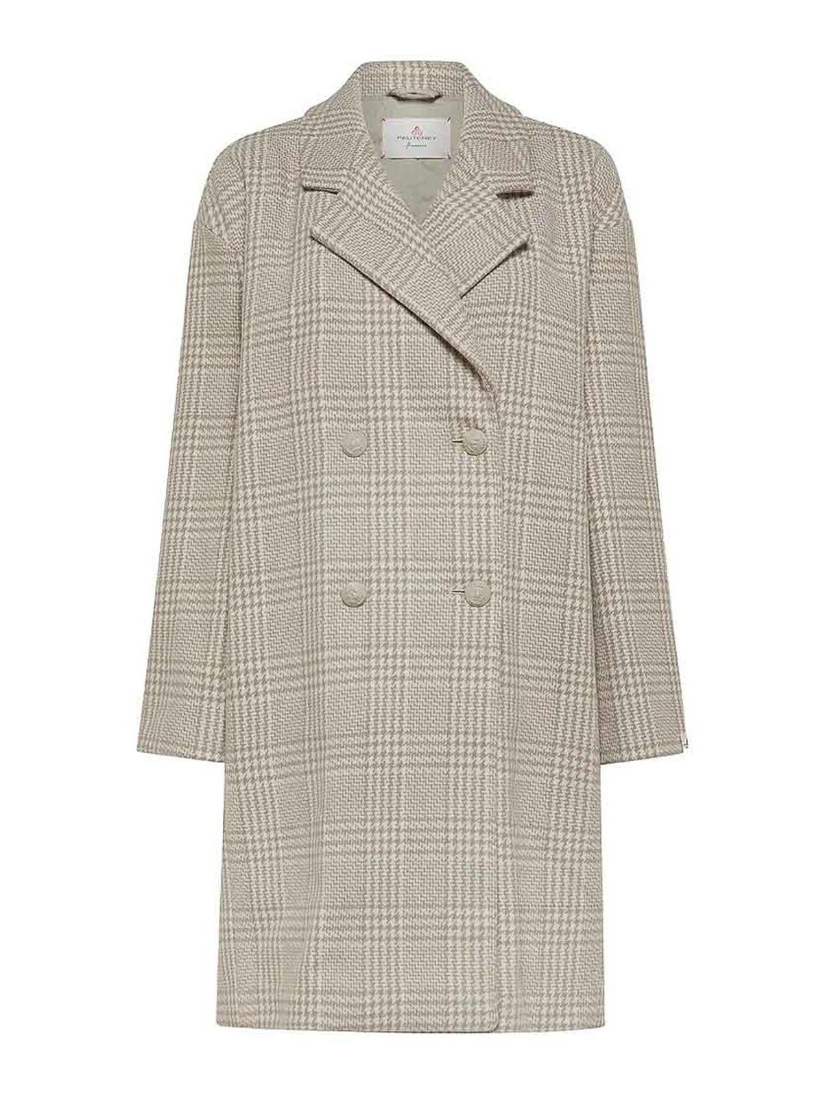 Cappotto lungo Peuterey doppiopetto in tessuto misto lana e acrilico, con fantasia a quadri, taglio classico, personalizzazione assicurata con cuciture ad angolo sul fondo maniche.