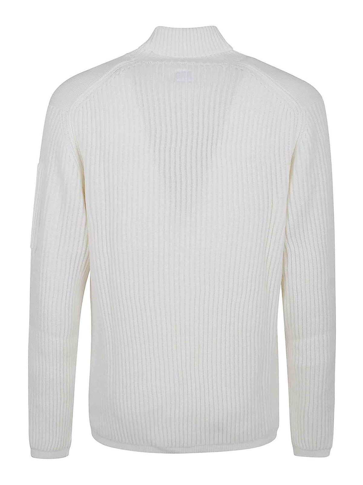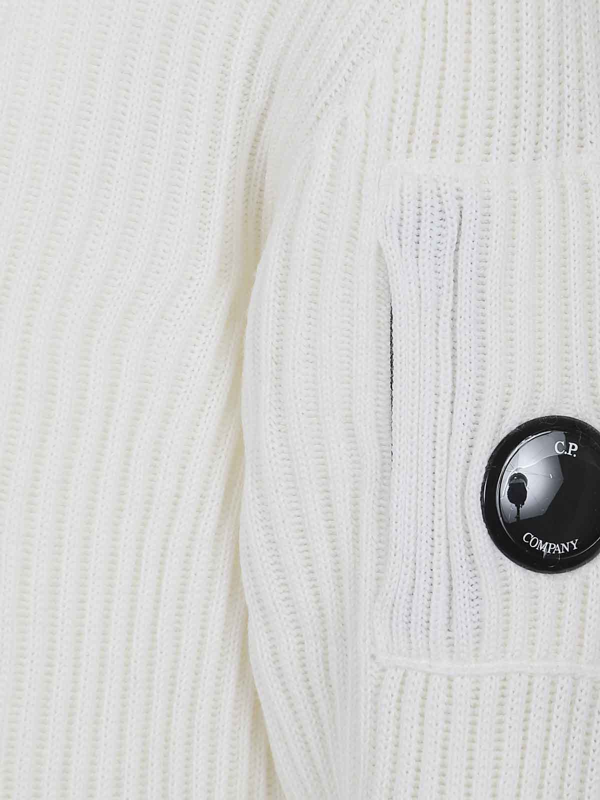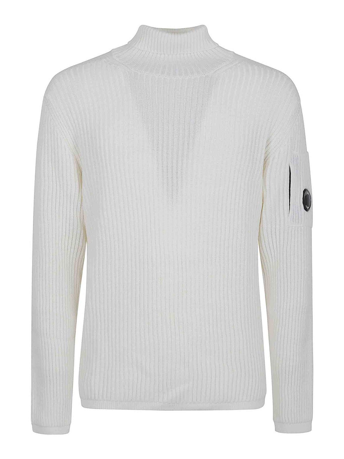 Maglione in misto lana motivo a costine di cp company, dolcevita, maniche lunghe, polsini e fondo dritti, design vestibilit regolare. caratterizzato da iconica lente di c.p. company sul taschino, manica sinistra indossato.