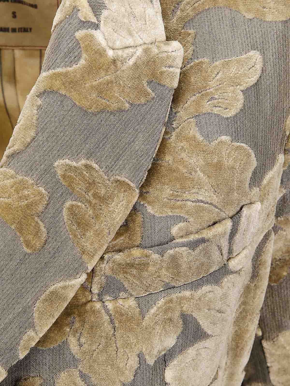 Giacca in cotone effetto velluto, fodera interna a contrasto, chiusura con bottoni, vita stretta.