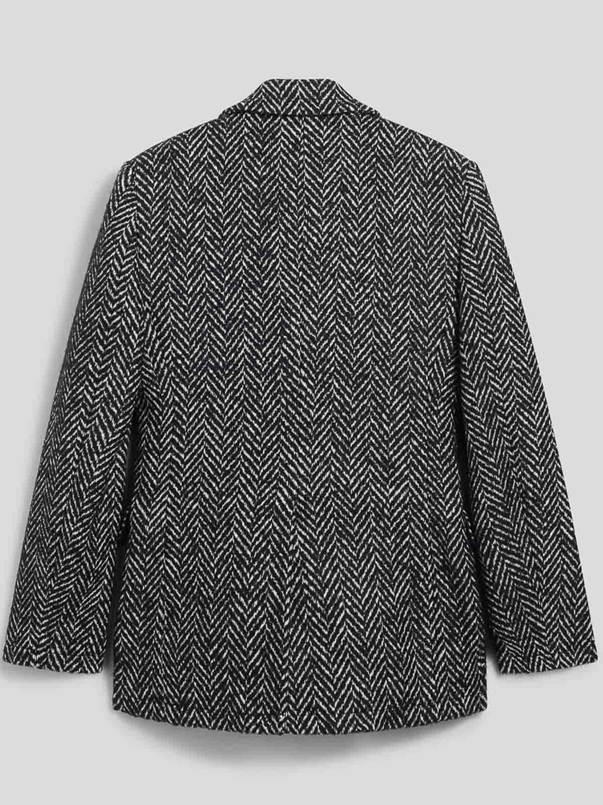 Blazer dal taglio sartoriale con motivo spigato, realizzato in tessuto strutturato per un look elegante.