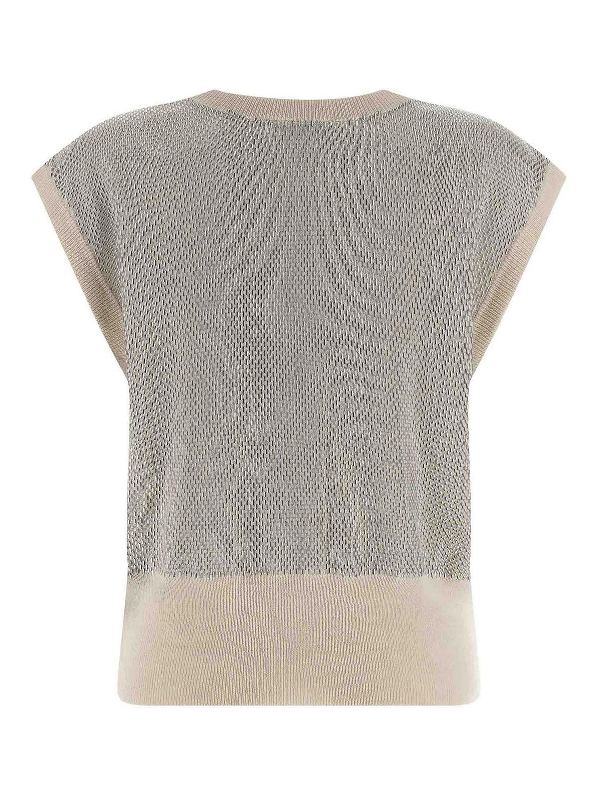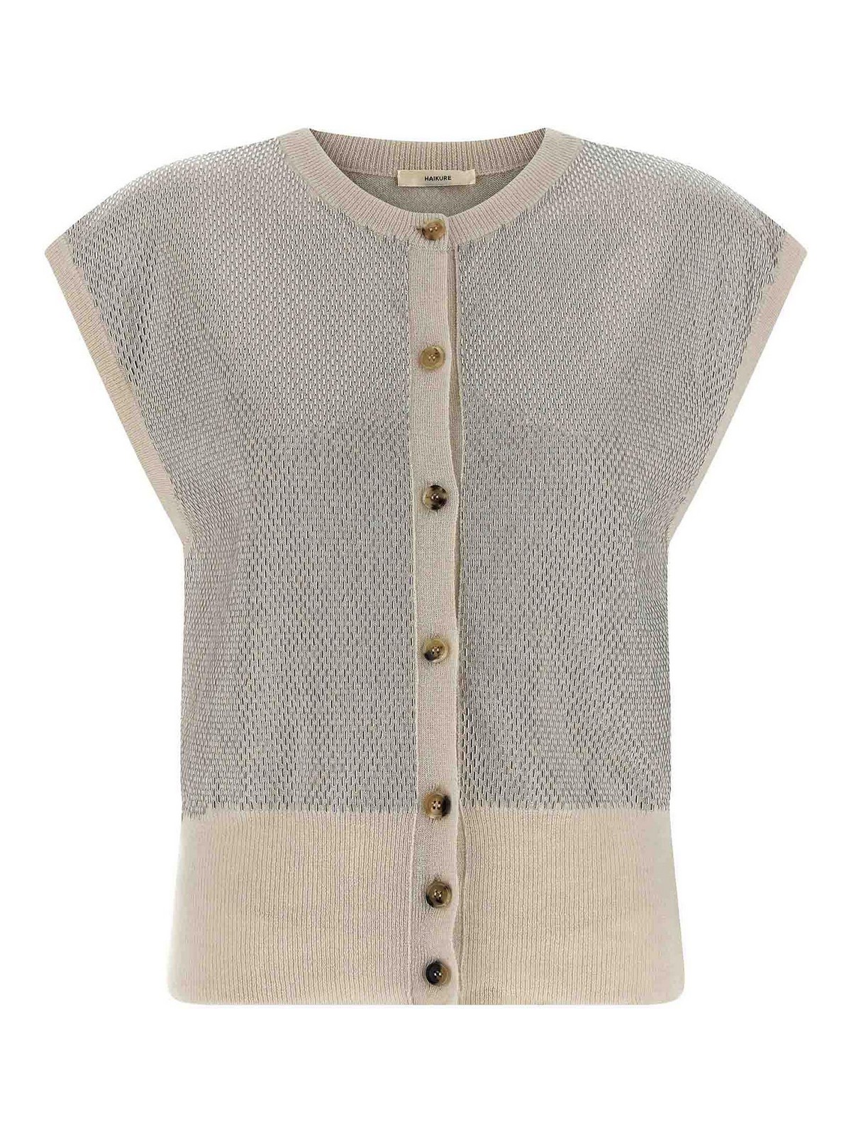 Gilet Kirby' in lana vergine con borchie baguette all over, girocollo, chiusura frontale con bottoni.