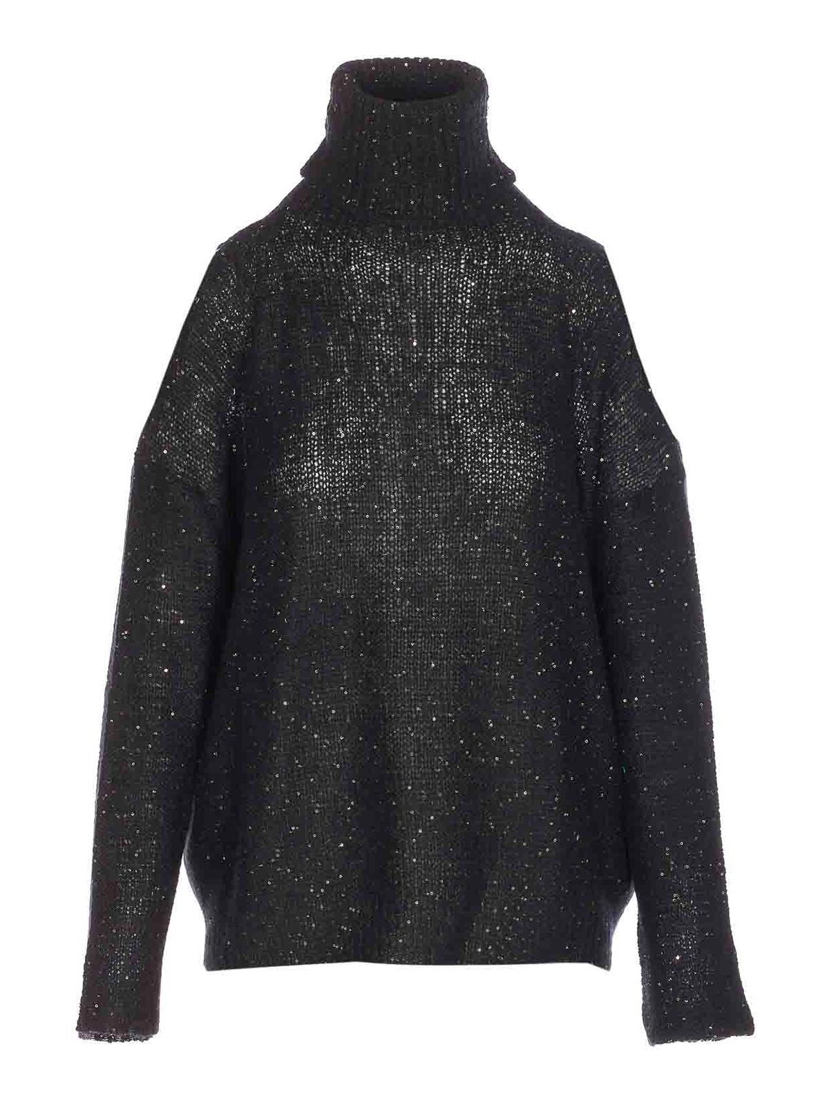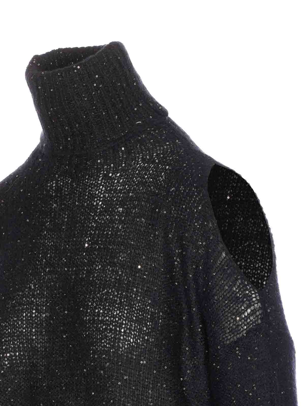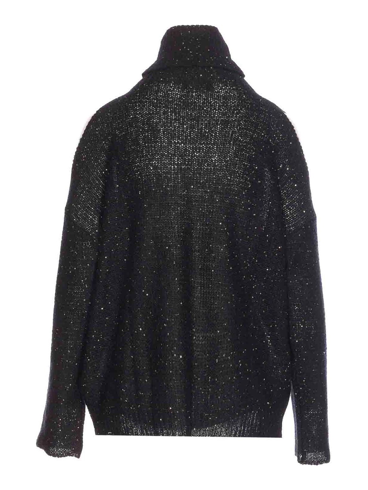 Maglia nera Roberto collina a collo alto, maniche lunghe, dettagli in paillettes, collo alto