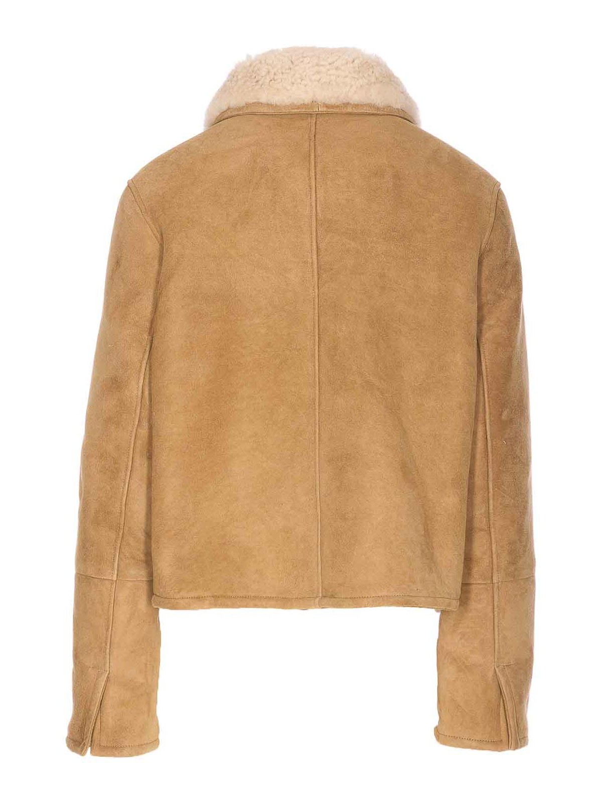 Ami - alexandre mattiussi giubbotto in shearling beige con chiusura a bottoni, collo regolare, maniche lunghe, tasche, camoscio