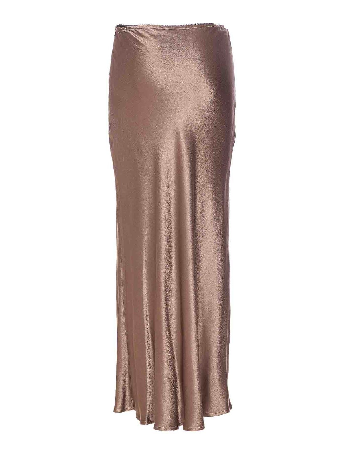 Gonna Eleh grigio fango con chiusura zip laterale, modello svasato, effetto satinato