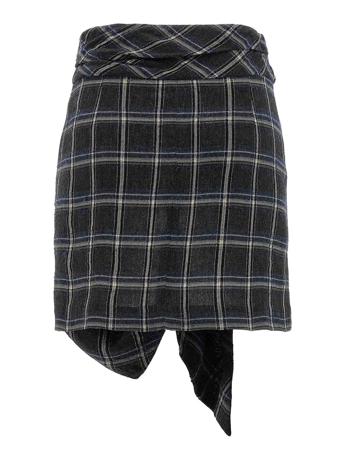 Mini gonna 'kimia' in jacquard misto cotone tartan, drappeggiata in vita con volant, chiusura laterale con zip e gancio.