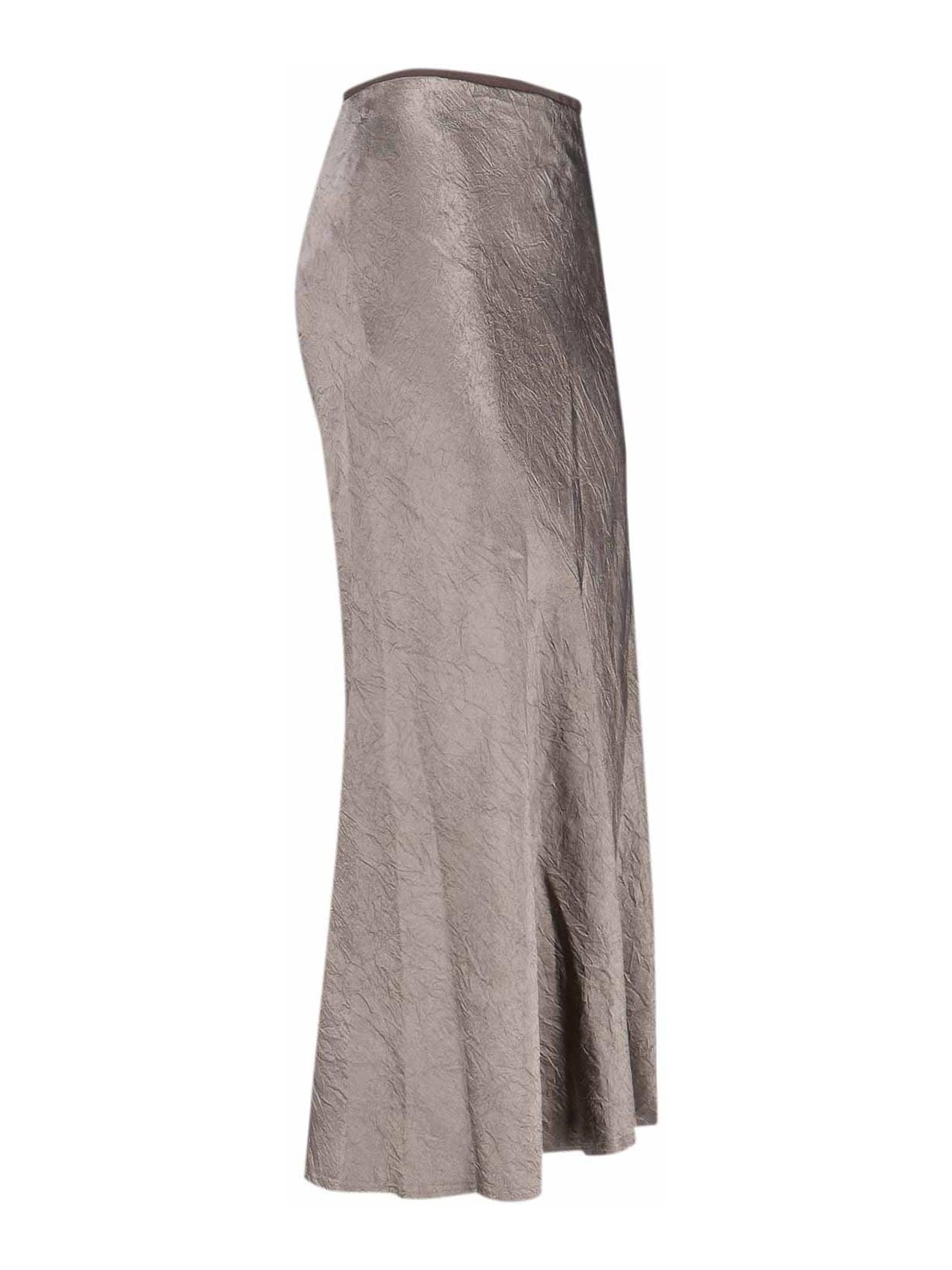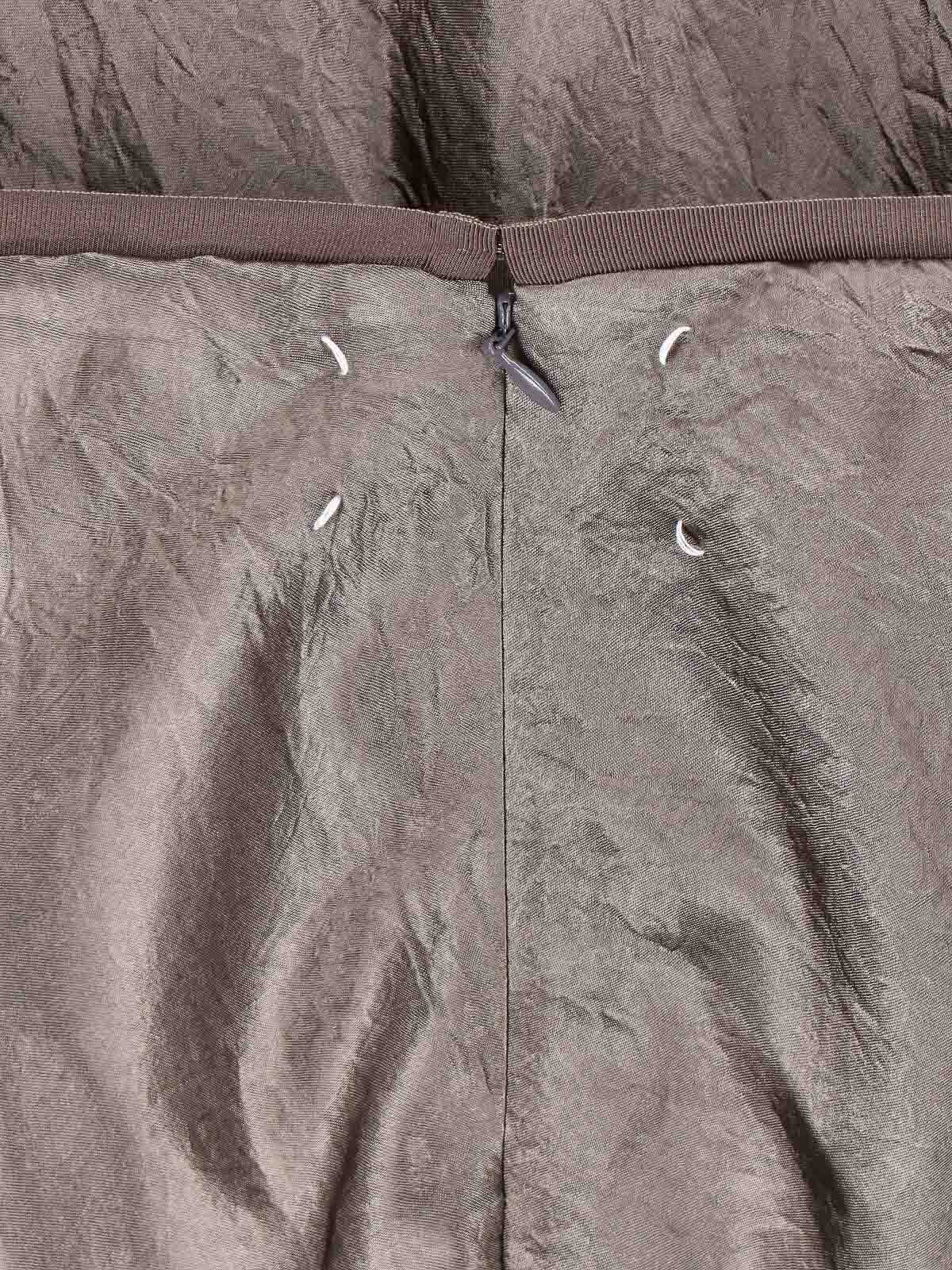 Gonna midi in raso maison margiela, taupe, vita media, chiusura zip retro, dettaglio pliss su fondo, imputure