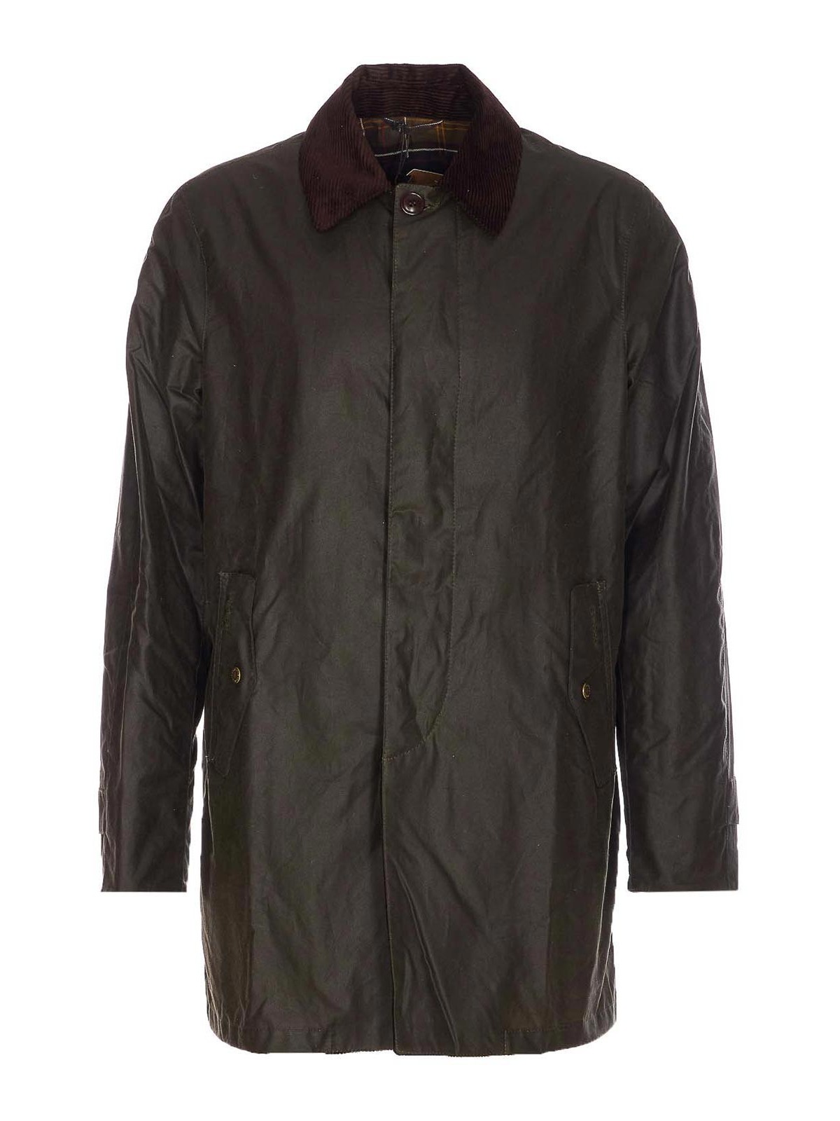 Trench Barbour x baracuta in cera d'oliva con chiusura frontale con bottoni, tasche laterali, maniche lunghe, colletto regolare