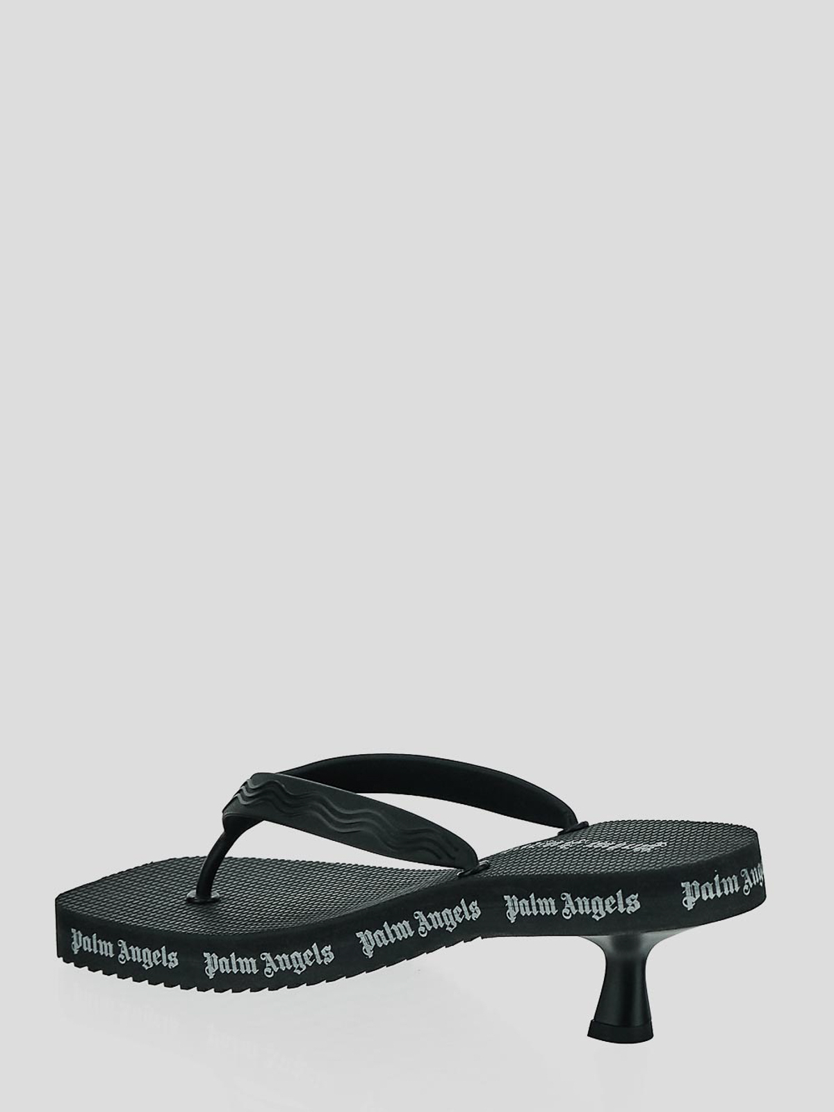Infradito Palm Angels kitten heel in gomma nera con stampa logo bianca