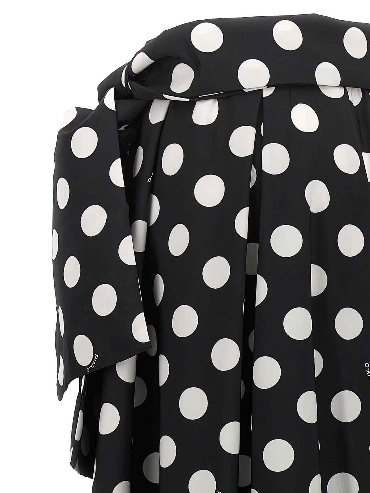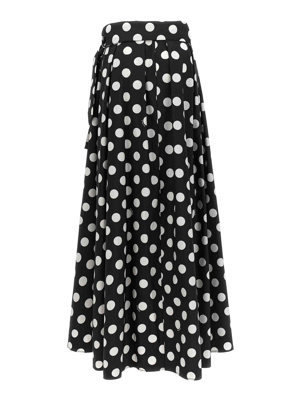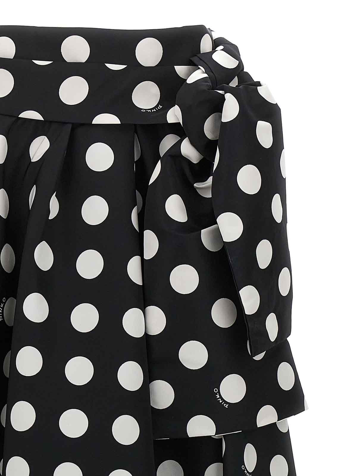 gonna lunga involucro a portafoglio a pois con maxi fiocco in vita spacco laterale e fondo asimmetrico