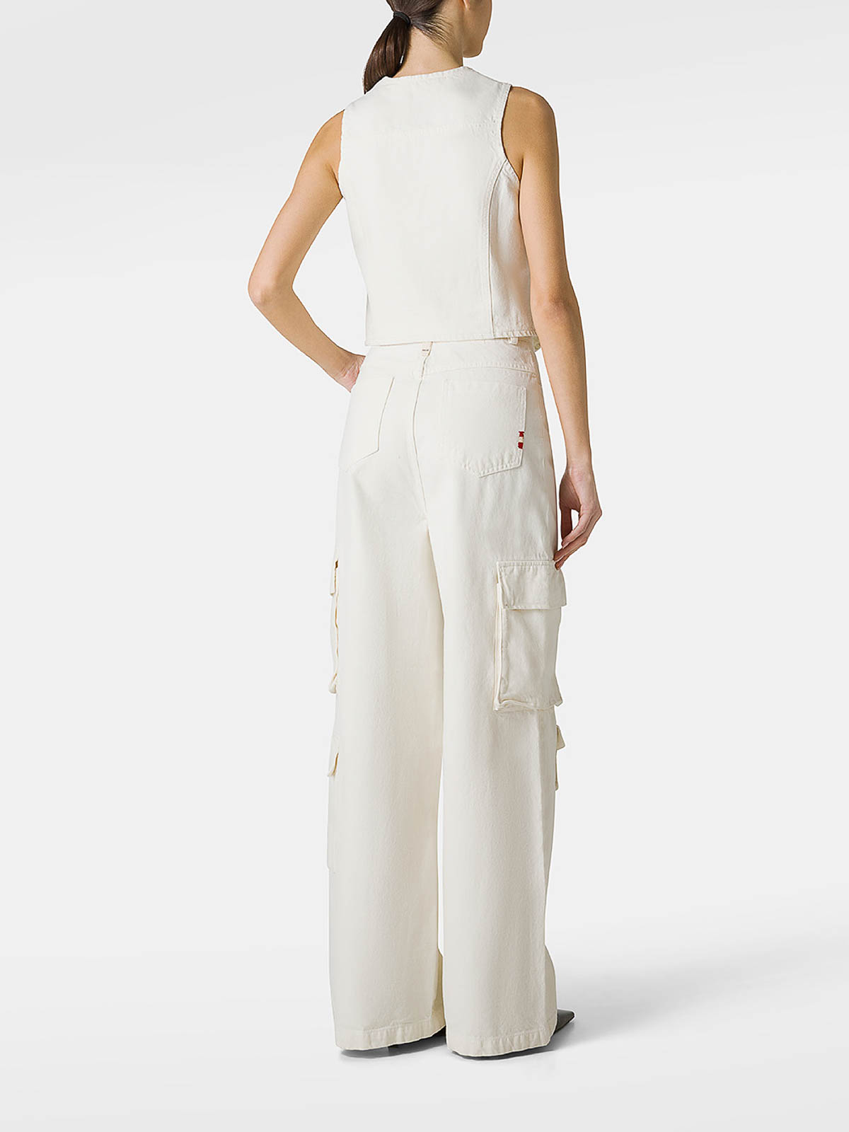 Jeans Combat' bianco in denim passanti per cintura a vita alta passante iconico con logo sul retro bottone con logo e zip due tasche sulle due tasche sul retro ampie tasche laterali con patta vestibilità ampia