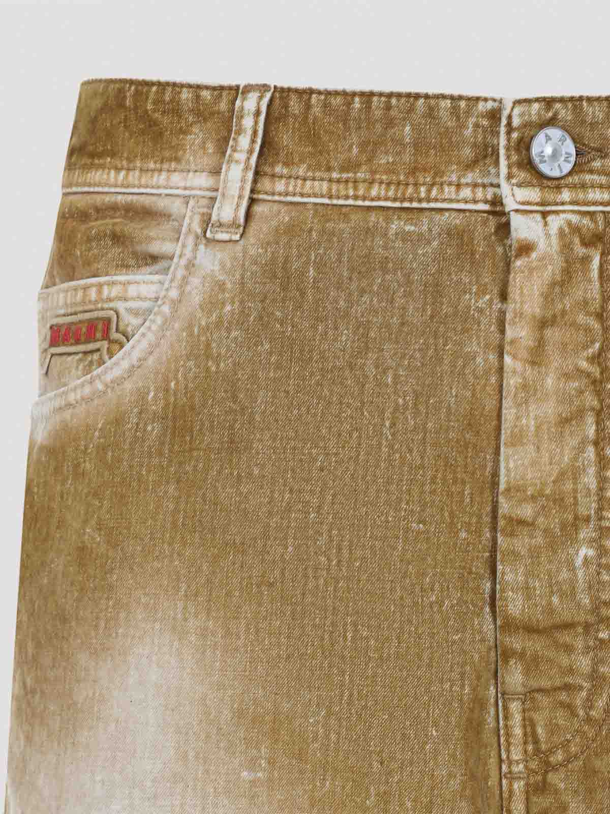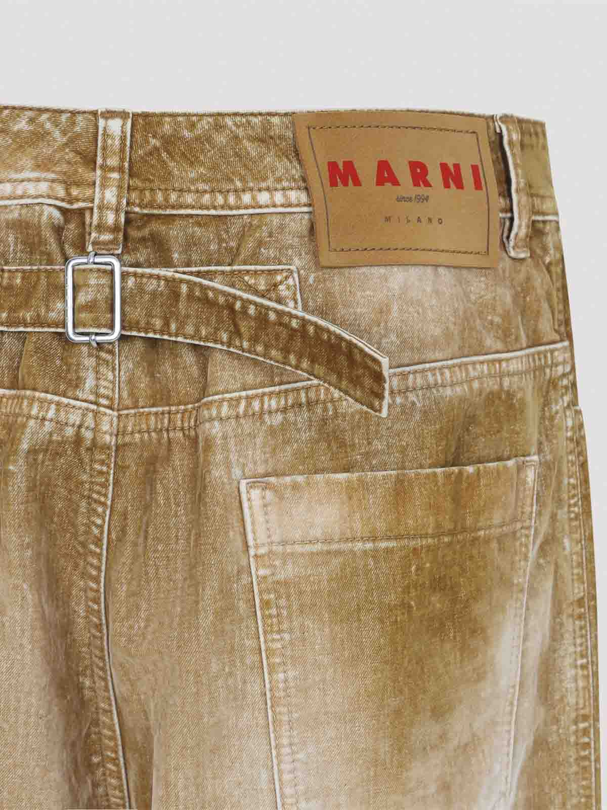 Jeans Marni in cotone lavato. cotone lavato marrone, vita regolare, modello 5 tasche, chiusura frontale con zip e bottoni, passanti per cintura, gamba dritta, cinturino regolabile sul retro. vestibilità regolare.