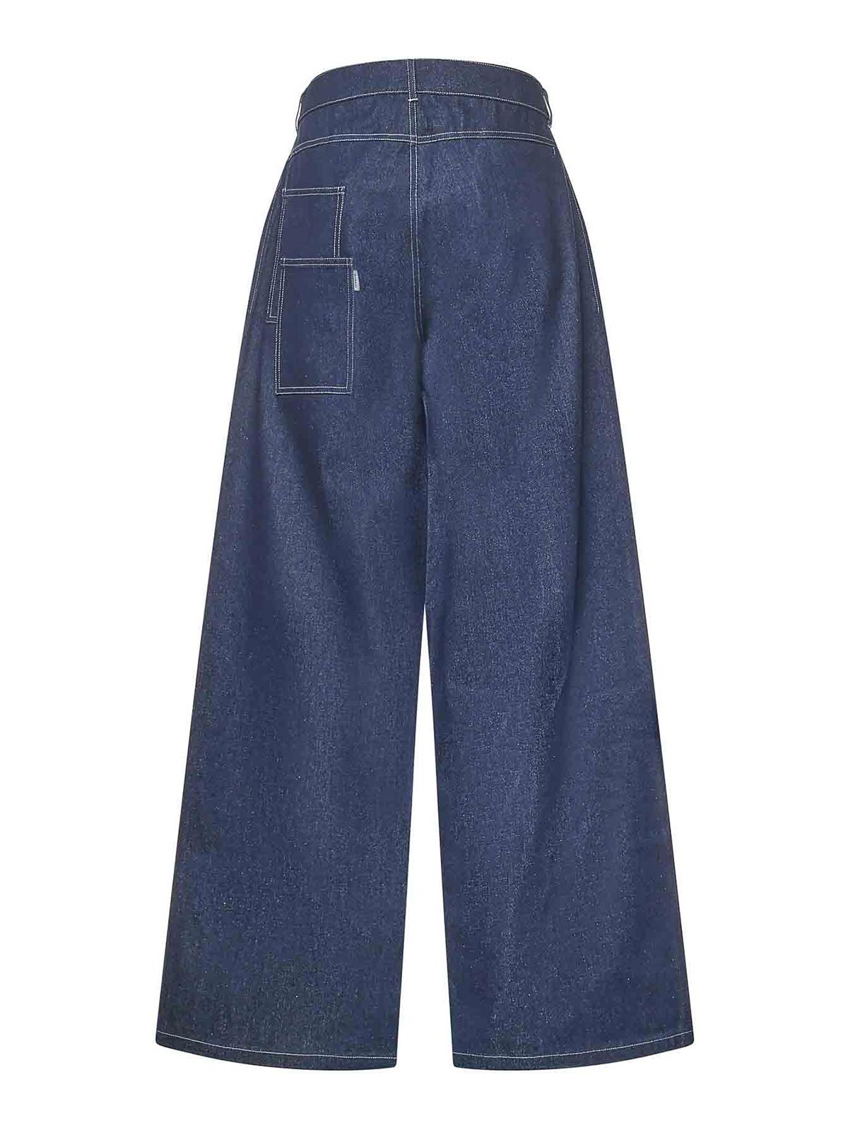 I passanti per cintura larghi sulla gamba, la dimensione oversize mostrata nella foto, sono realizzati in Italia, colore blu