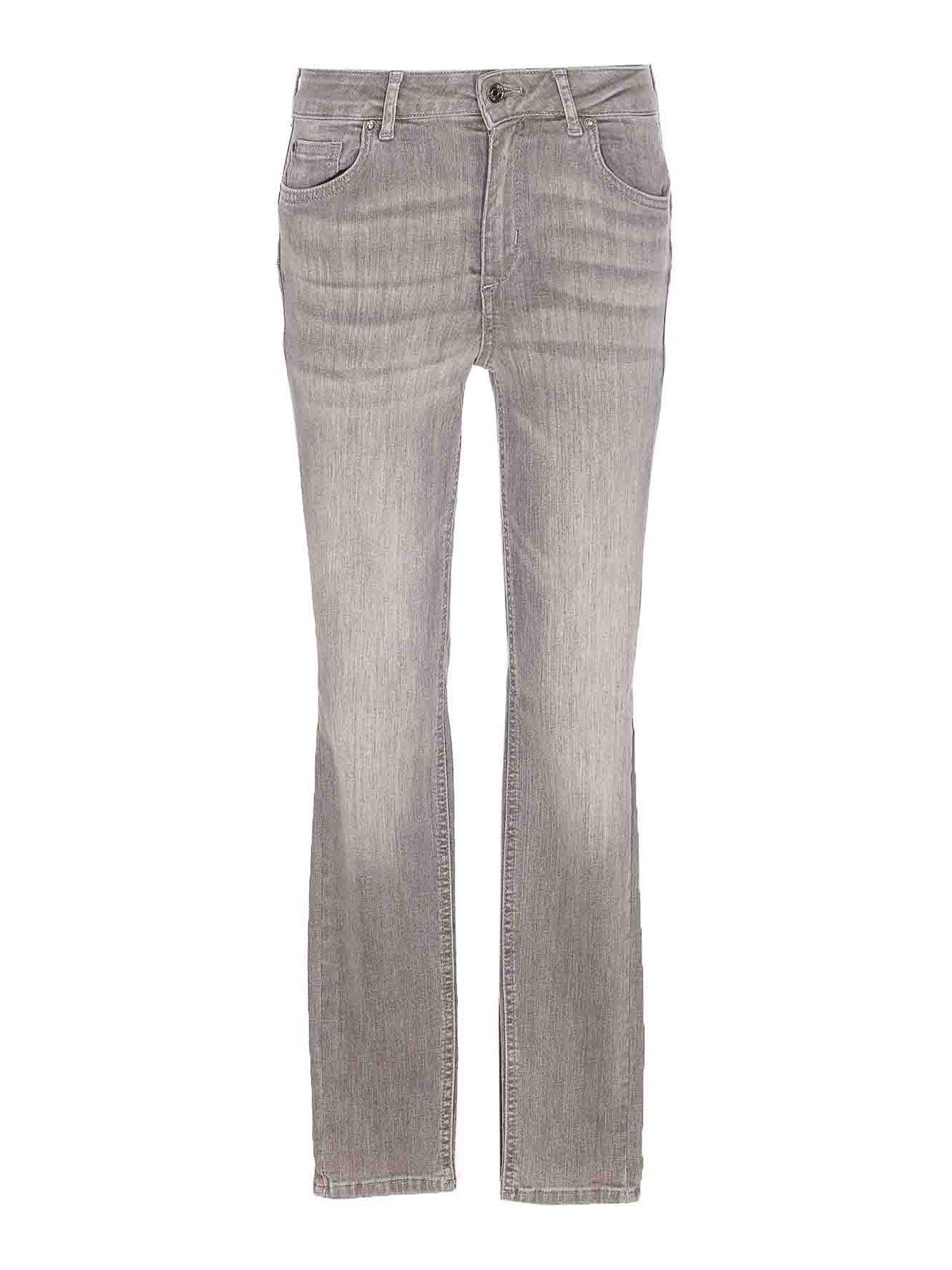 Jeans Liu jo in denim con chiusura frontale con bottone e zip, 5 tasche, patch logo sul retro, modello skinny, vita alta