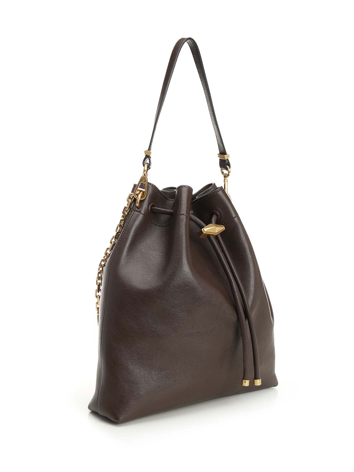 JIMMY CHOO: Bucket bags - Brown Leather Cinch Bucket Bag