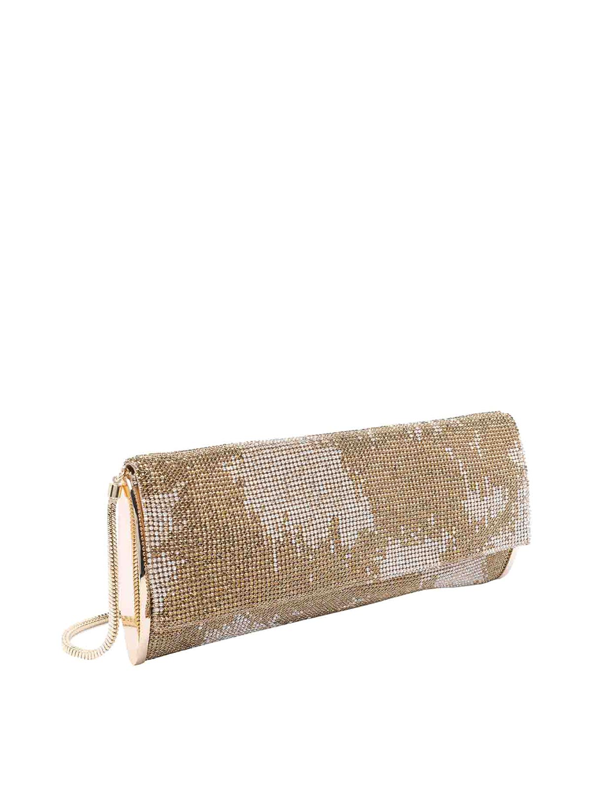 Benedetta Bruzziches Gold Crystals Crystals Crossbody Borsa, chiusura magnetica, una tasca piatta e 2 slot, spalla rimovibile