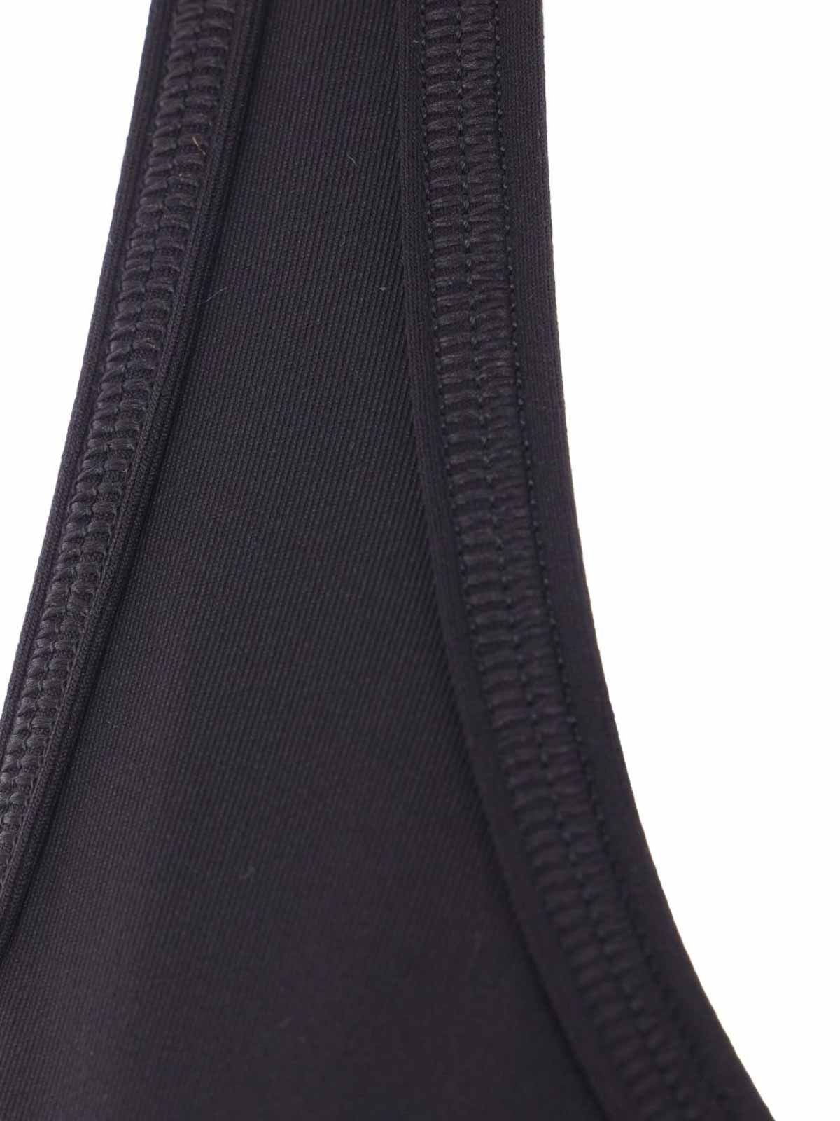 Dettaglio logo spalline incrociate nere, scollo rotondo aderente