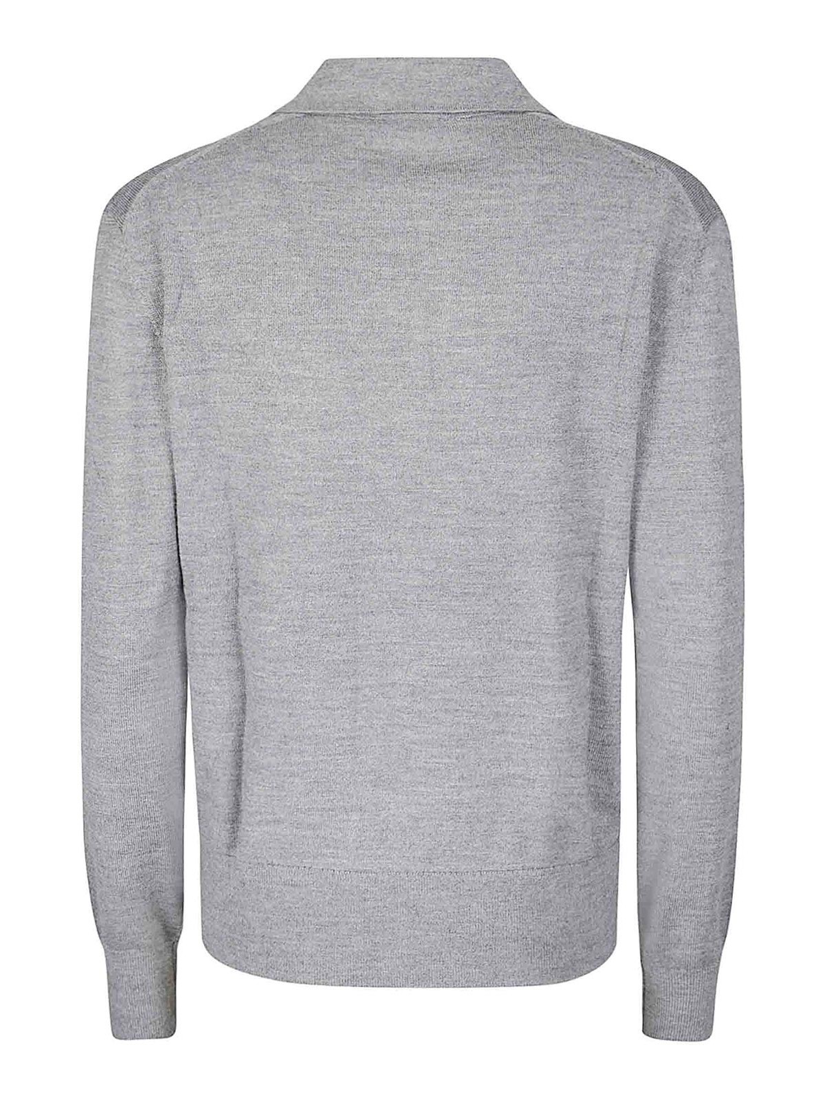 Maglione con scollo a v con colletto senza bottoni, maniche lunghe, vestibilita' regular, dettaglio logo ricamato tono su tono.