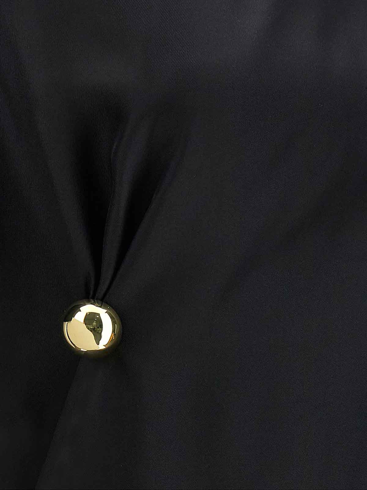 top in twill di seta 'madea' con silhouette a trapezio, drappeggio laterale grazie al dettaglio in metallo, girocollo, chiusura posteriore con zip, maniche corte, fondo asimmetrico.