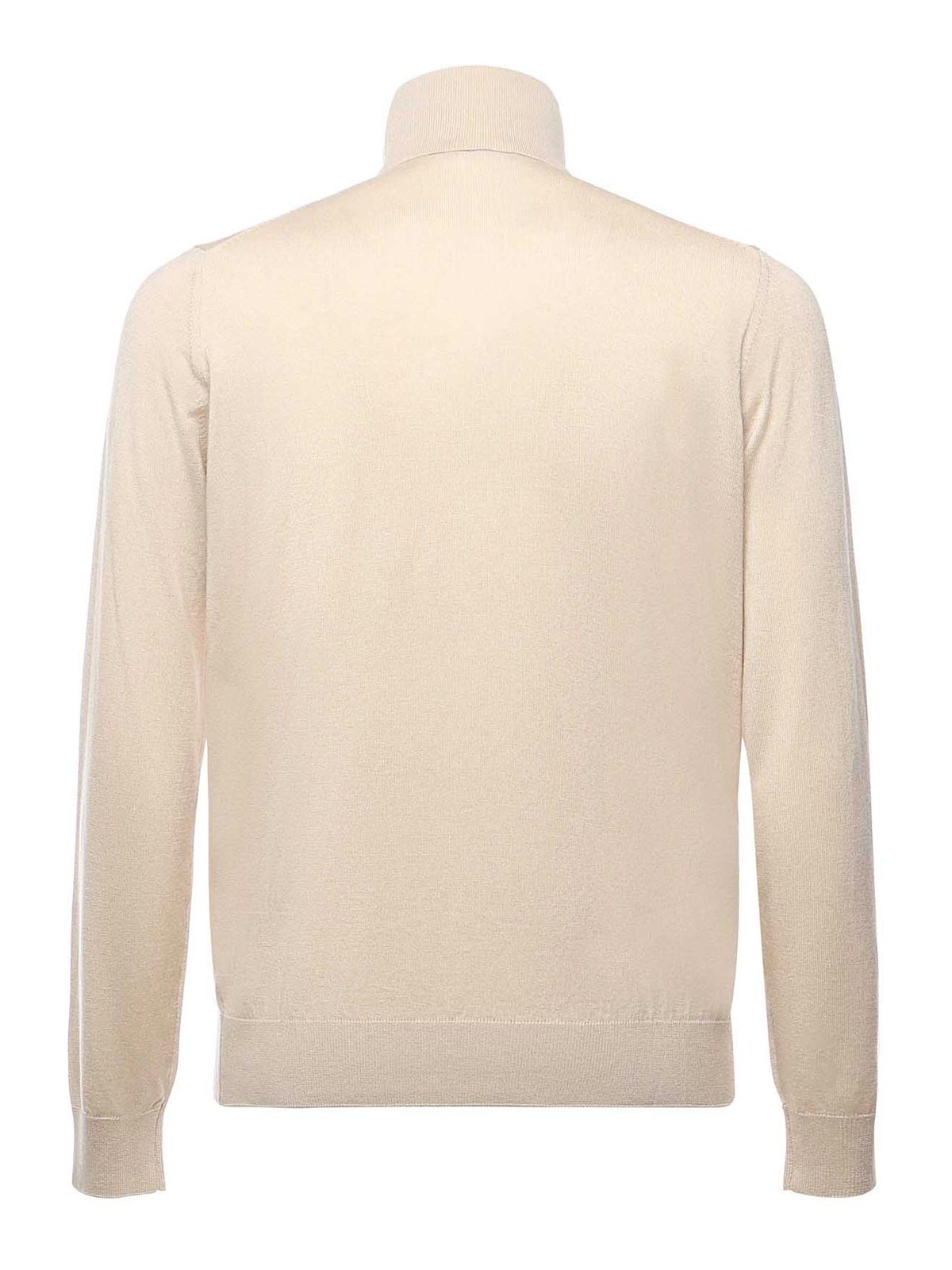 L'orlo del colletto e i polsini a costine a collo alto mostrati nella foto sono color farina d'avena firmati