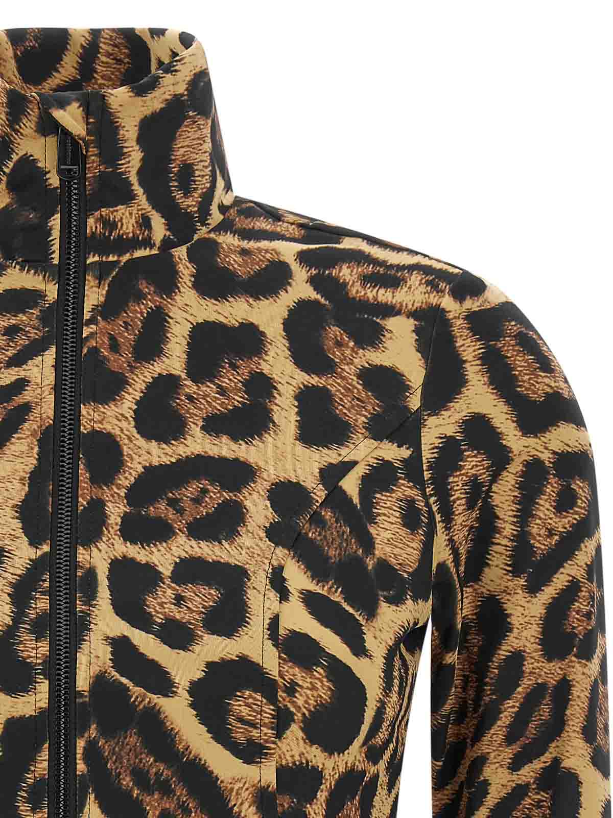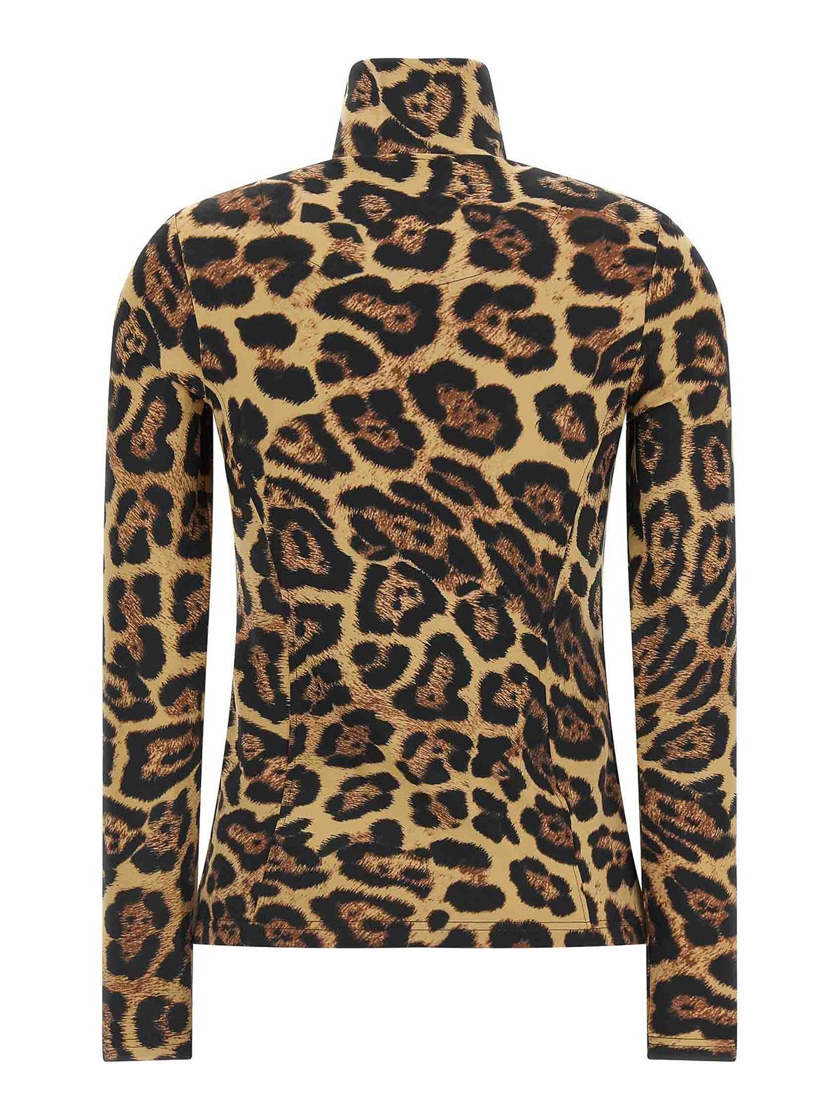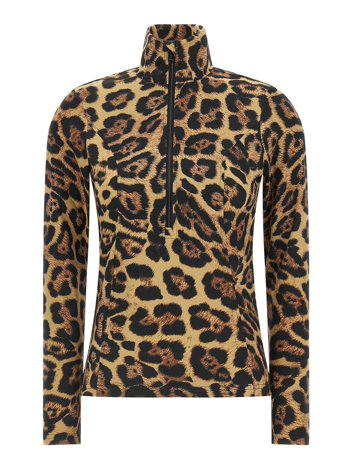 Maglia in interlock powerstretch 'leona' con stampa leopardata antiodore antiodore, collo alto con mezza zip, maniche lunghe.