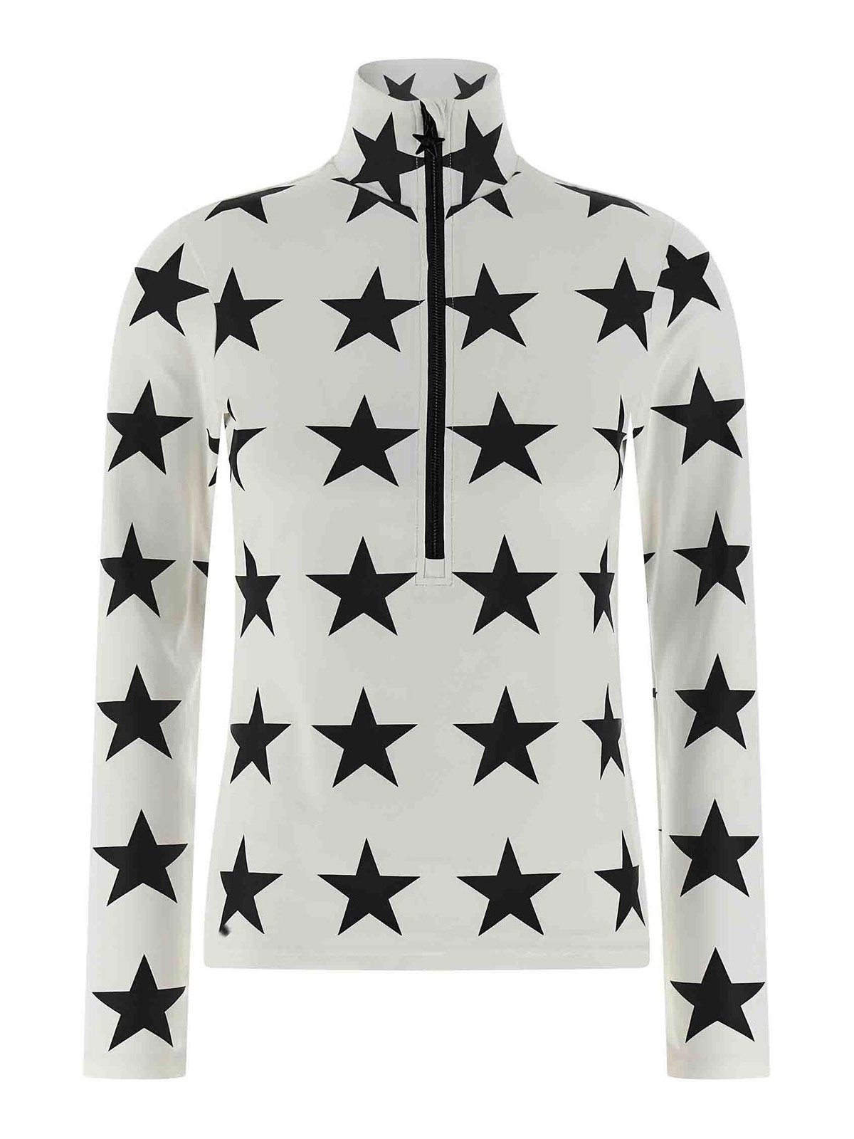 Maglia da sci Silvadur 'lunaria' powerstretch interlock con stampa di stelle all-over, collo alto, mezza zip e maniche lunghe.
