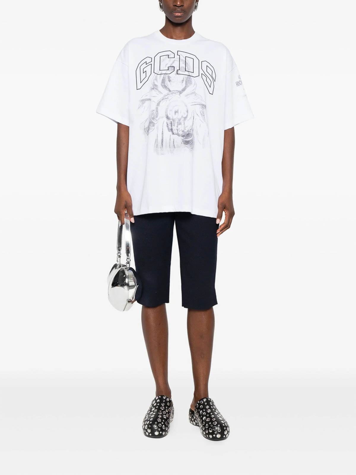 White Graphic Stampa logo Stampare a collo rotondo a maniche corte