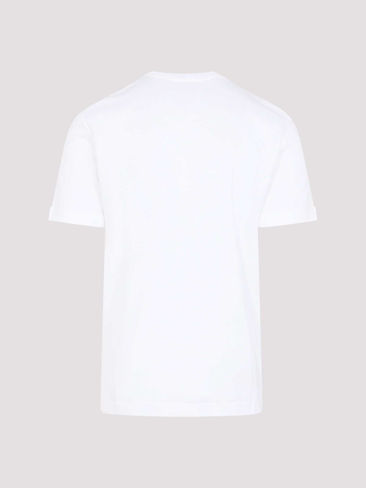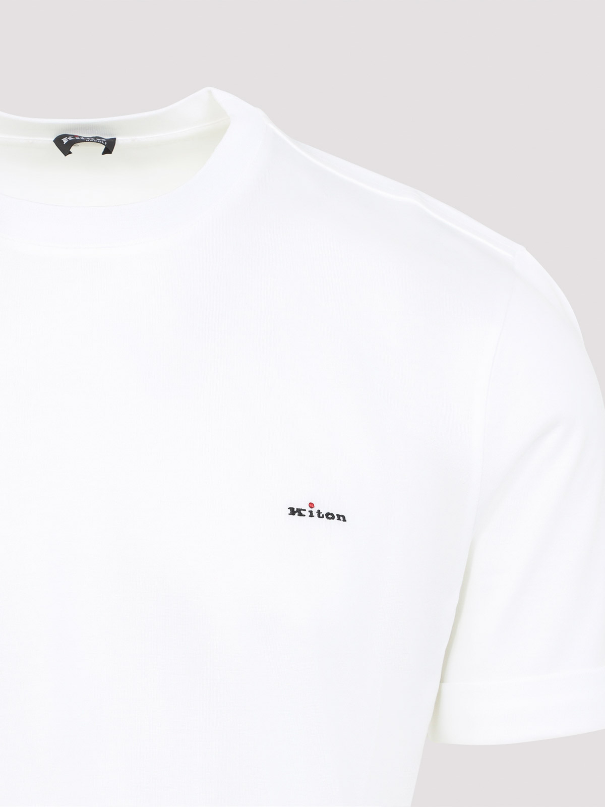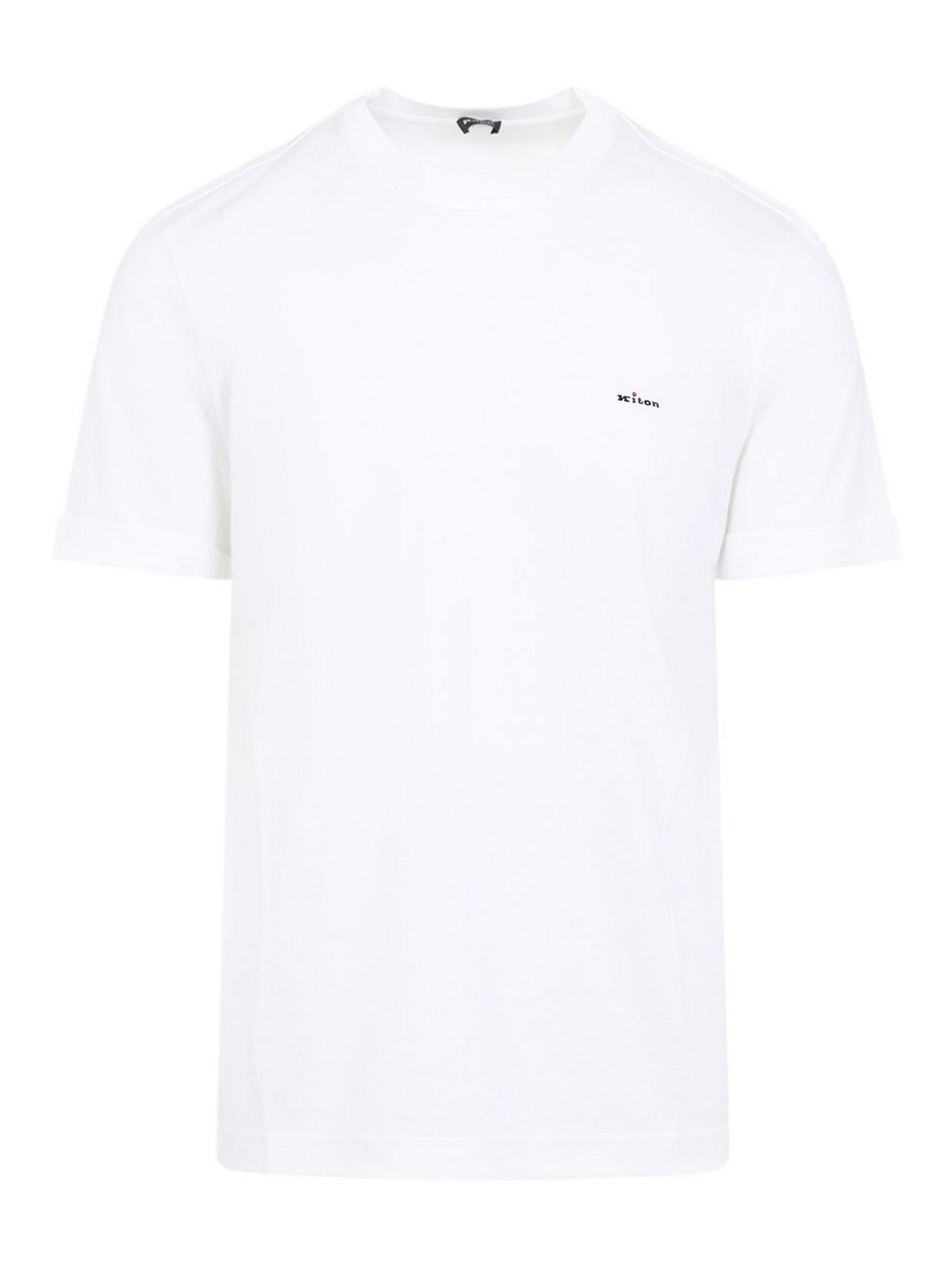 T-shirt bianco kiton t-shirt bianco puro collo rotondo a contrasto nero ricamato a maniche corte dritta orlo dritta cucitura tonale