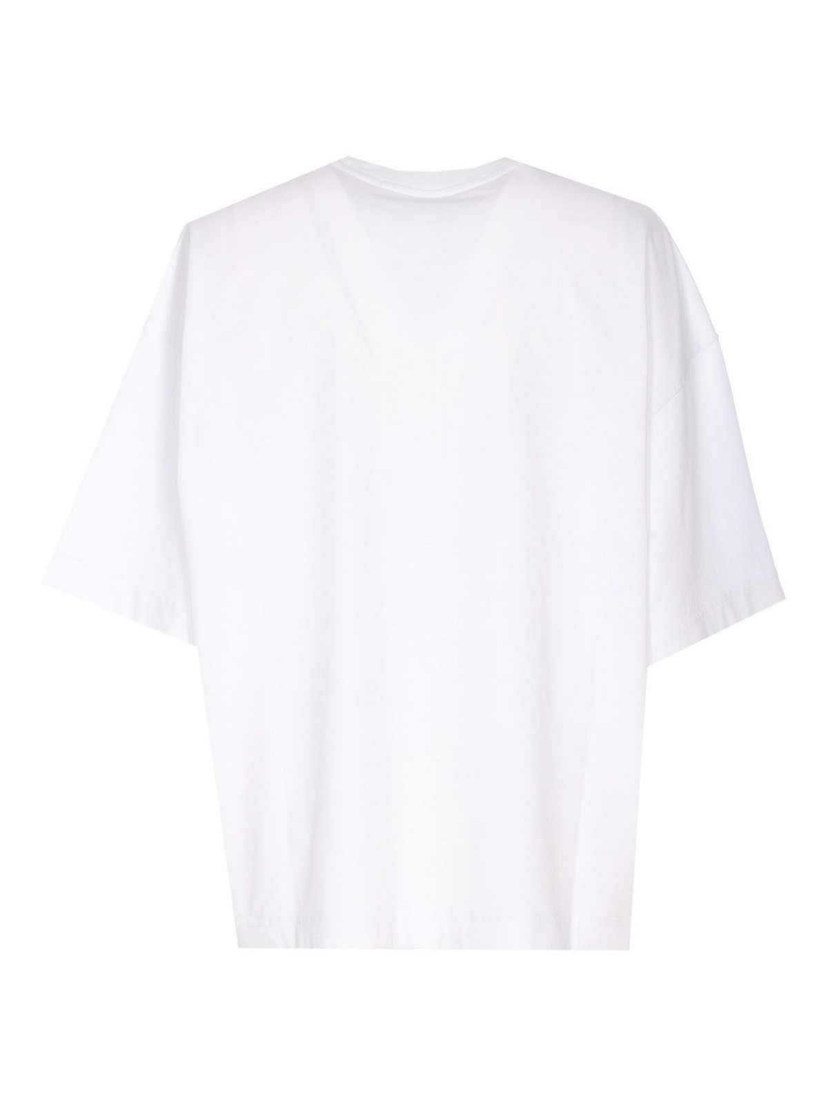 T-shirt bianca boxy di Alexander Wang, girocollo, stampa logo sul davanti, dettagli glitter