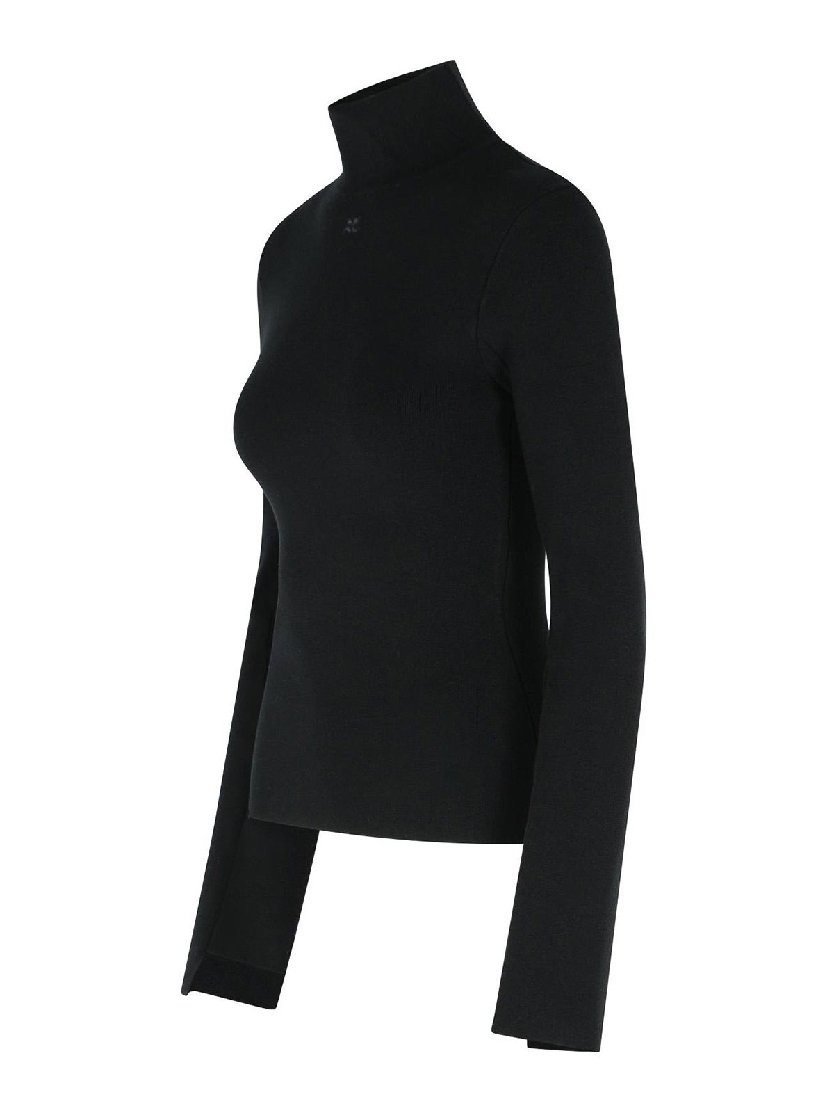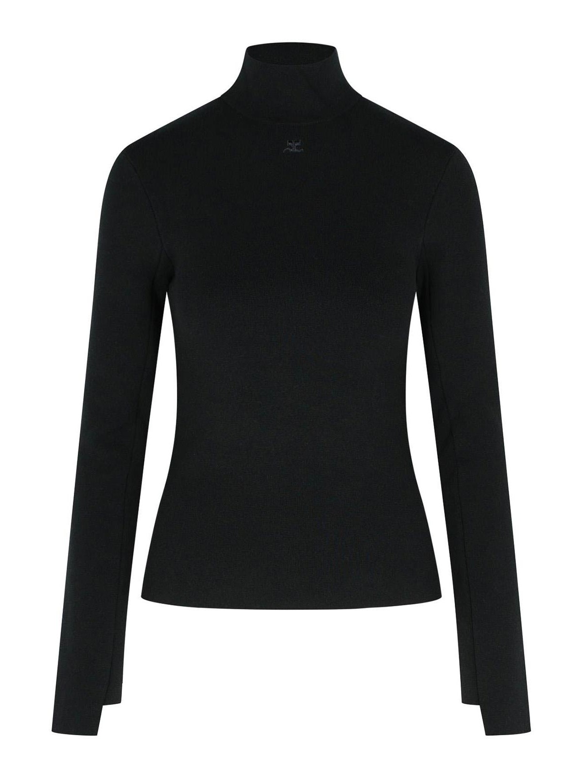 Courreges: maglia collo rotondo - Maglione a dolcevita in miscela viscosa nera