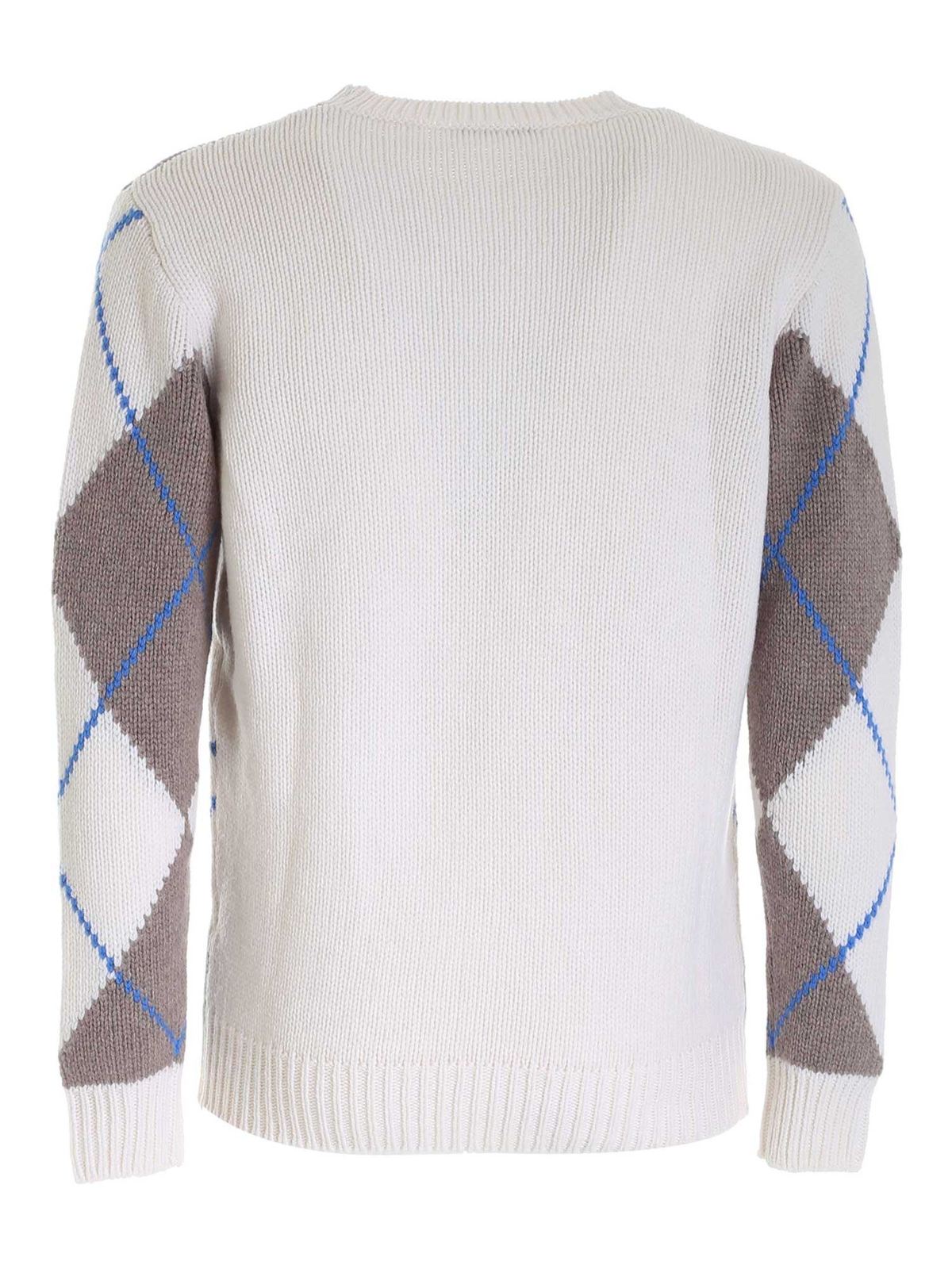 Kangra Cashmere: maglia collo rotondo - Maglione a rombi grigio e bianco