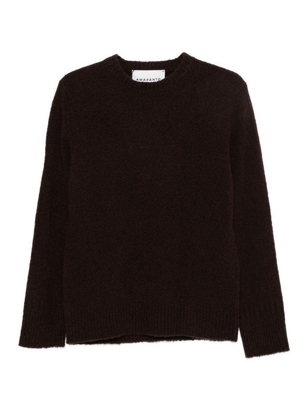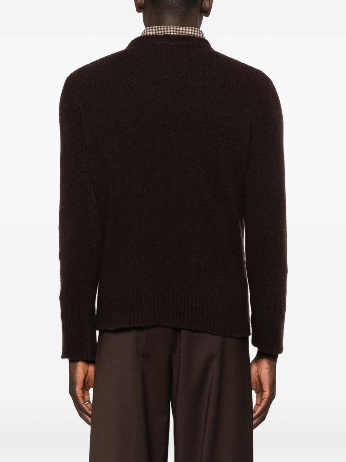 Maniche lunghe del collo marrone e orlo a coste e orlo