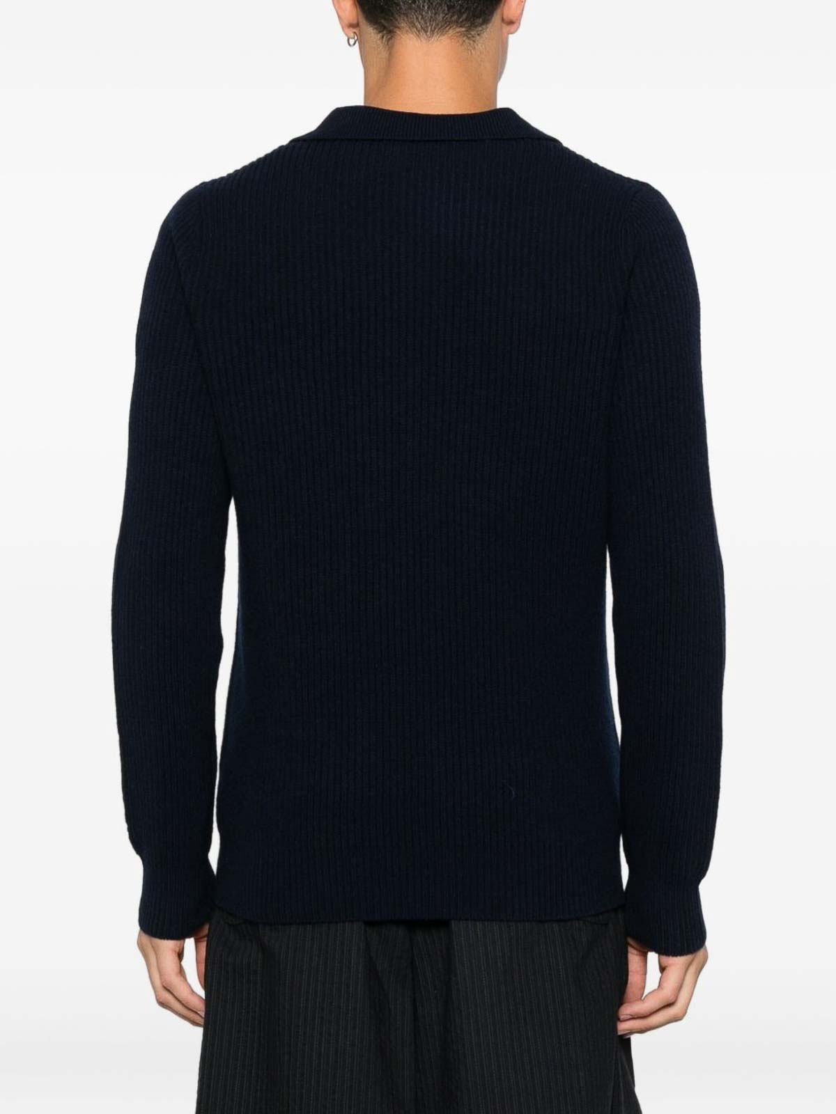 Caratteristiche blu lavorazione in maglia a coste colletto stile polo maniche lunghe logo