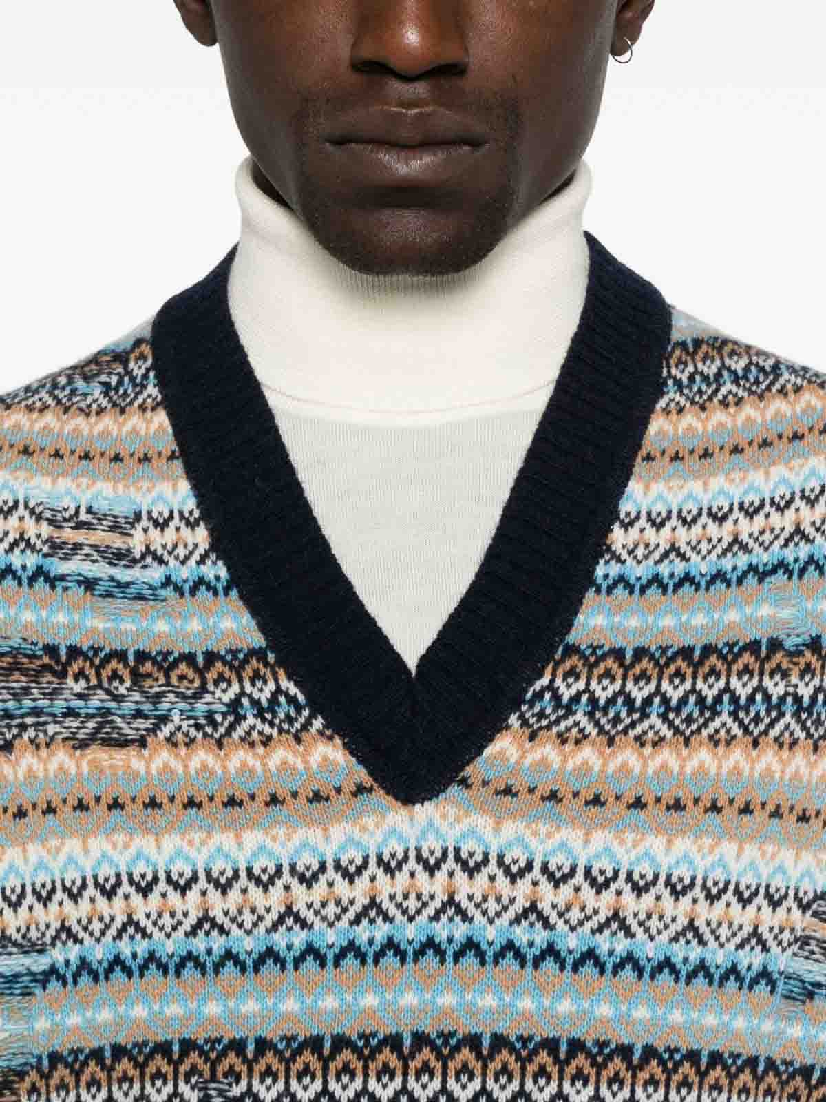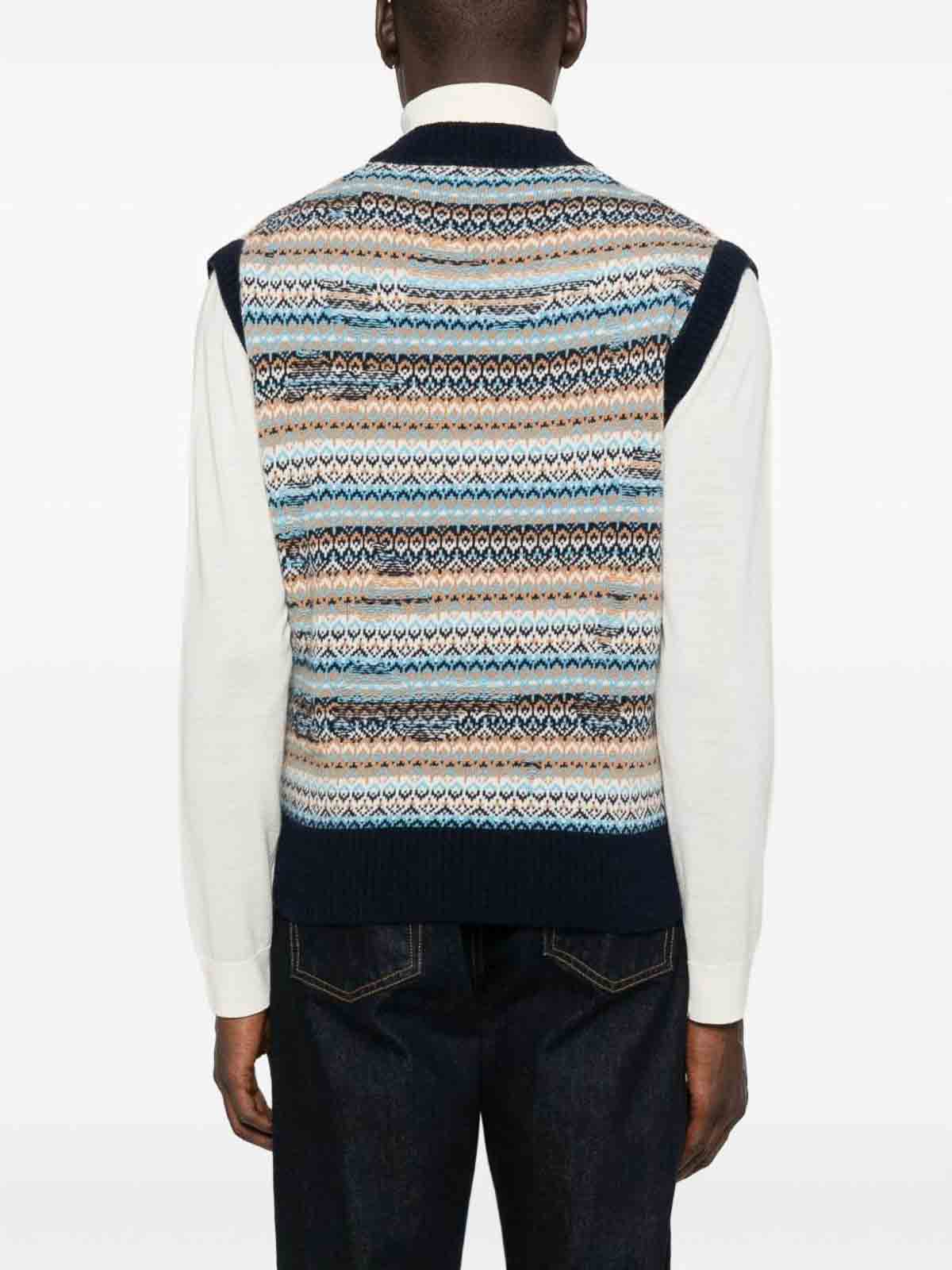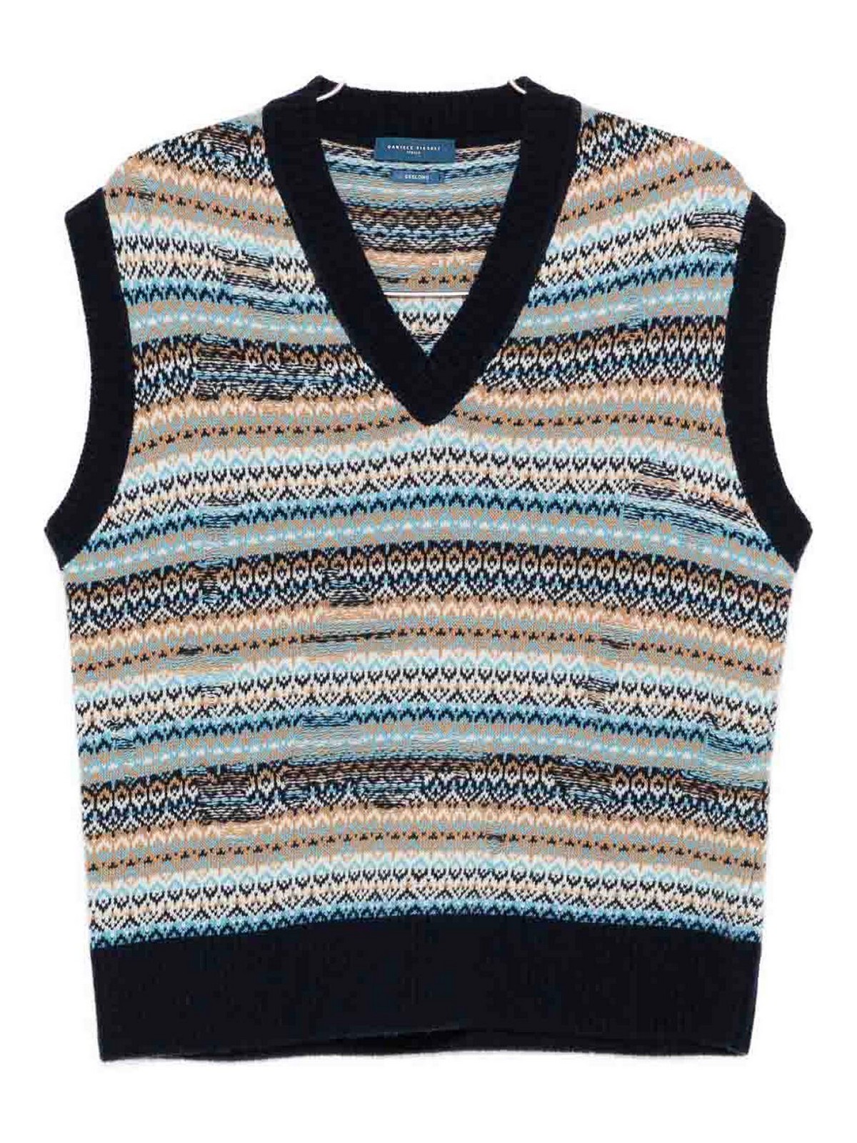 Navy V, orlo a coste senza maniche con pattern dell'isola fiera del collo