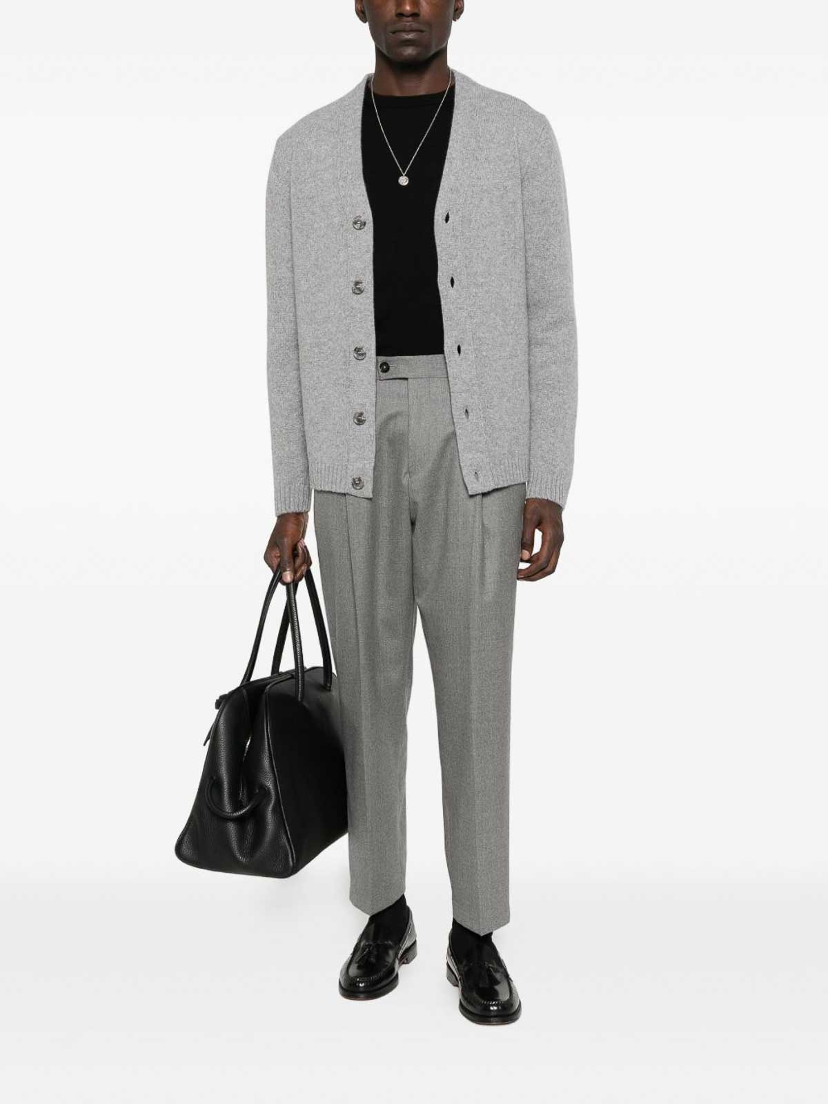 Pulsini a V grigi a maniche lunghe Cuffi a coste a coste