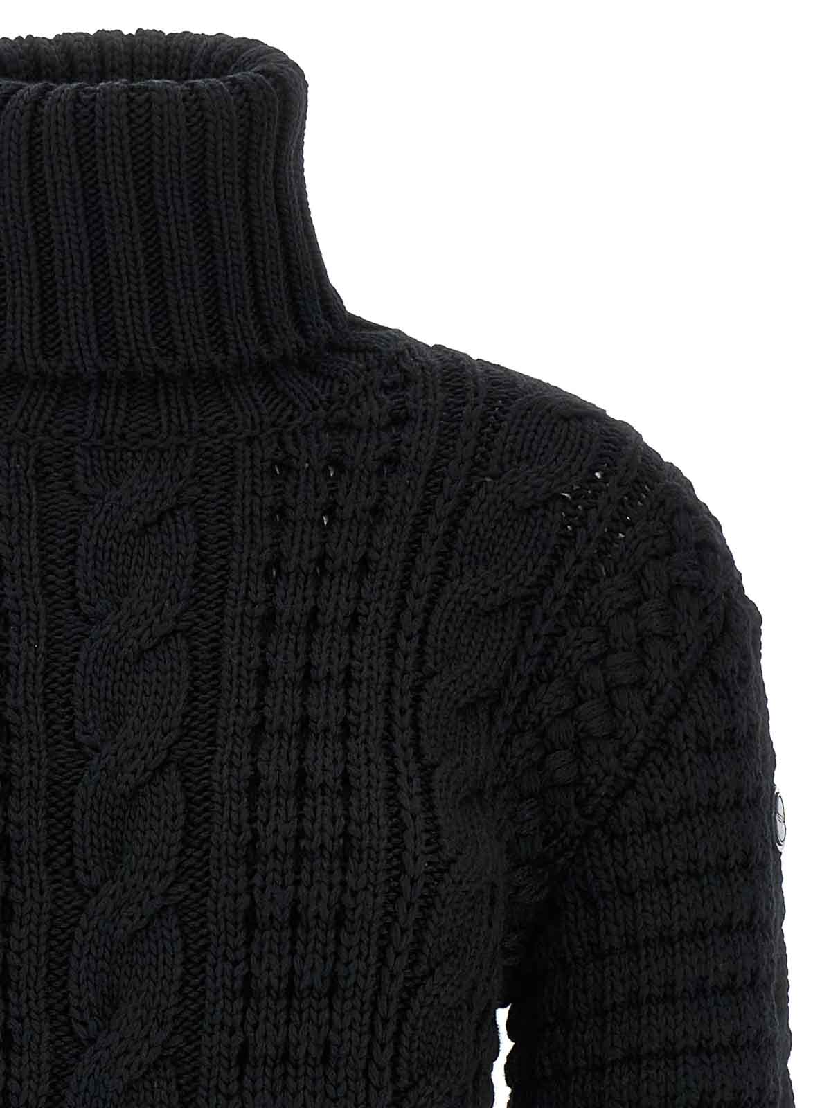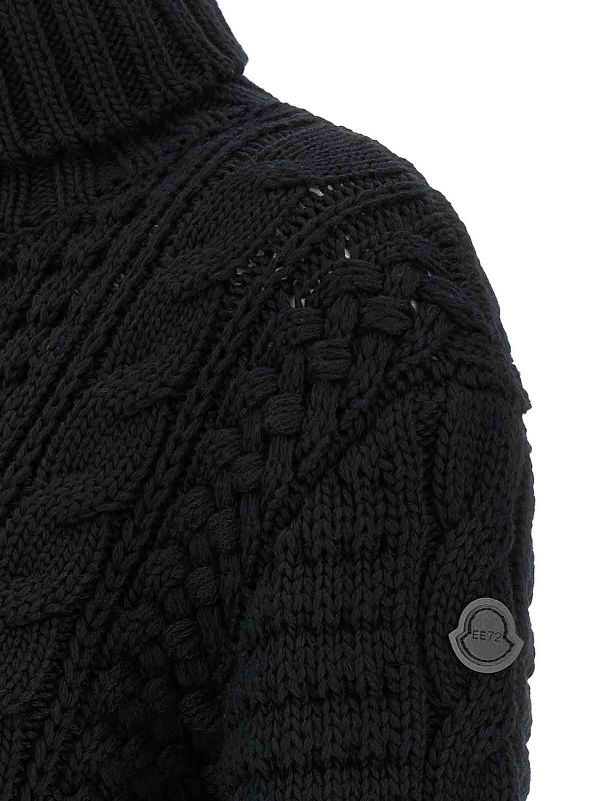 Maglia dolcevita Moncler x edward enninful tricot in lana vergine lavorata a maglia pesante, collo alto con risvolto, maniche lunghe con risvolto e applicazione patch logo tono su tono.